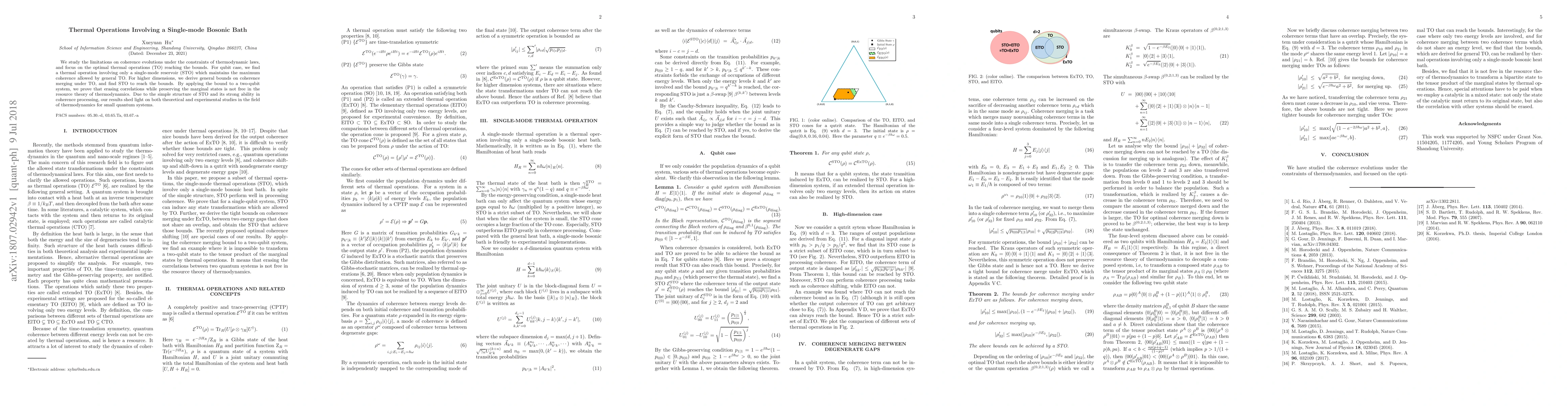 The paper explores coherence limitations in quantum thermodynamics, identifying an optimal thermal operation (STO) using a single-mode reservoir that maintains maximum coherence for qubits. For higher dimensions, it sets coherence merging bounds, proving that erasing correlations without altering marginal states is unfeasible. The simplicity and efficiency of STO in coherence processing inform both theoretical and experimental quantum thermodynamics research for small systems.