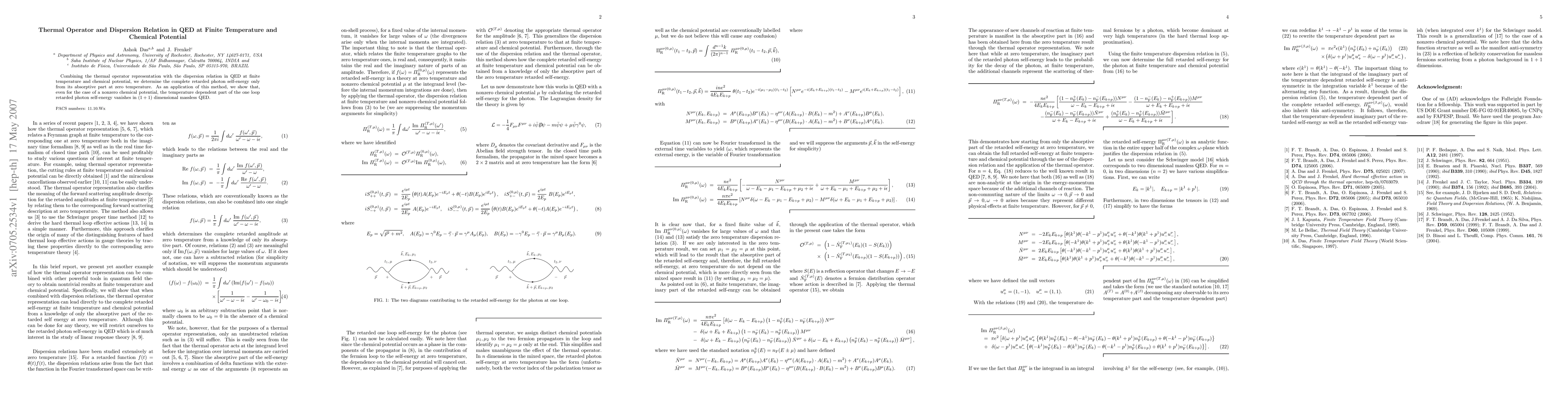 Combining the thermal operator representation with the dispersion relation in QED at finite temperature and chemical potential, we determine the complete retarded photon self-energy only from its absorptive part at zero temperature. As an application of this method, we show that, even for the case of a nonzero chemical potential, the temperature dependent part of the one loop retarded photon self-energy vanishes in $(1+1)$ dimensional massless QED.