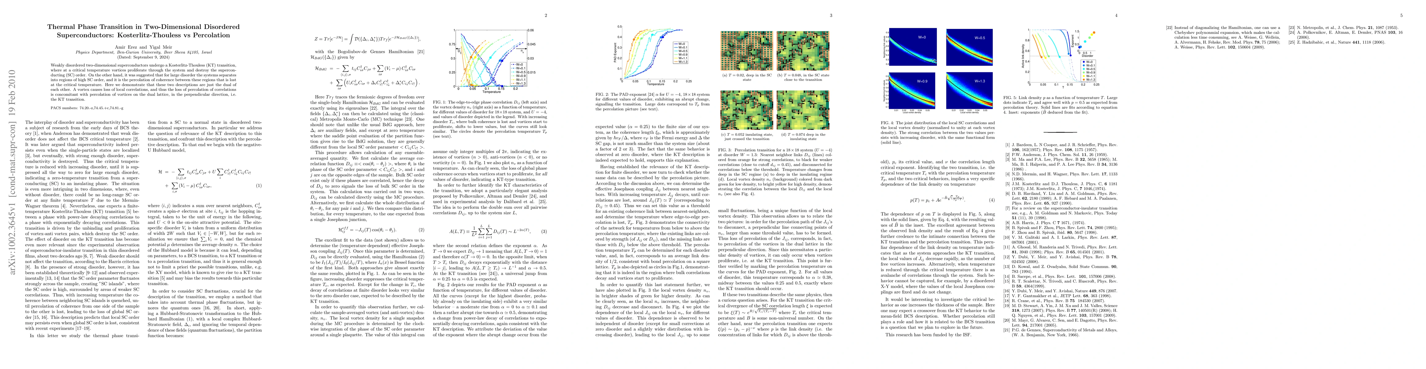 This paper explores the thermal phase transition in two-dimensional disordered superconductors, showing that the Kosterlitz-Thouless (KT) transition and percolation of superconducting coherence are dual phenomena. The KT transition involves vortex proliferation, while percolation describes the loss of coherence between high-order regions.