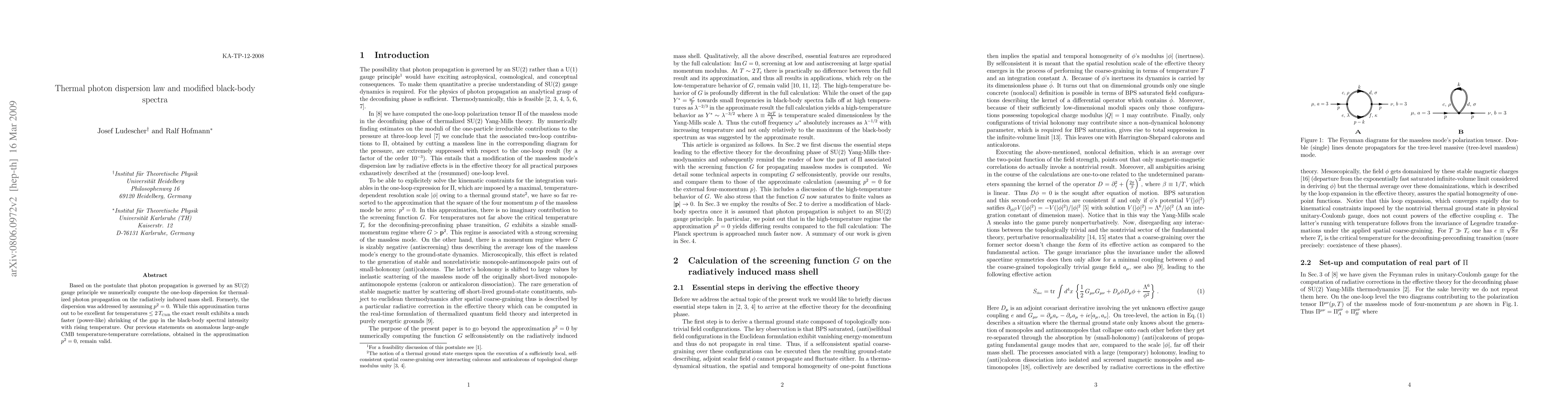 Based on the postulate that photon propagation is governed by an SU(2) gauge principle we numerically compute the one-loop dispersion for thermalized photon propagation on the radiatively induced mass shell. Formerly, the dispersion was addressed by assuming $p^2=0$. While this approximation turns out to be excellent for temperatures $\le 2 T_{\tiny{CMB}}$ the exact result exhibits a much faster (power-like) shrinking of the gap in the black-body spectral intensity with rising temperature. Our previous statements on anomalous large-angle CMB temperature-temperature correlations, obtained in the approximation $p^2=0$, remain valid.