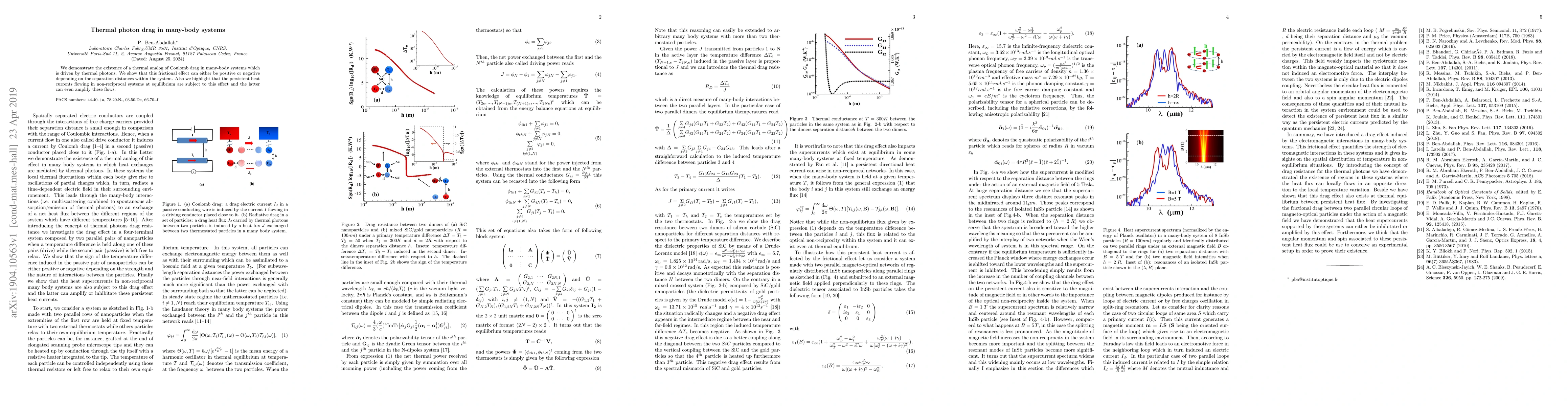 Researchers discovered a thermal analog of Coulomb drag in many-body systems, driven by thermal photons, which can create positive or negative friction depending on separation distances. This effect amplifies heat currents in non-reciprocal systems at equilibrium.
