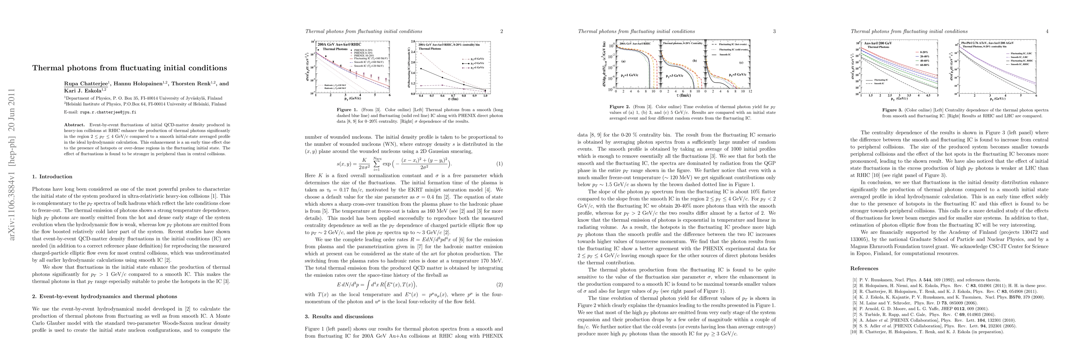 Event-by-event fluctuations of initial QCD-matter density produced in heavy-ion collisions at RHIC enhance the production of thermal photons significantly in the region $2 \le p_T \le 4$ GeV/$c$ compared to a smooth initial-state averaged profile in the ideal hydrodynamic calculation. This enhancement is a an early time effect due to the presence of hotspots or over-dense regions in the fluctuating initial state. The effect of fluctuations is found to be stronger in peripheral than in central collisions.