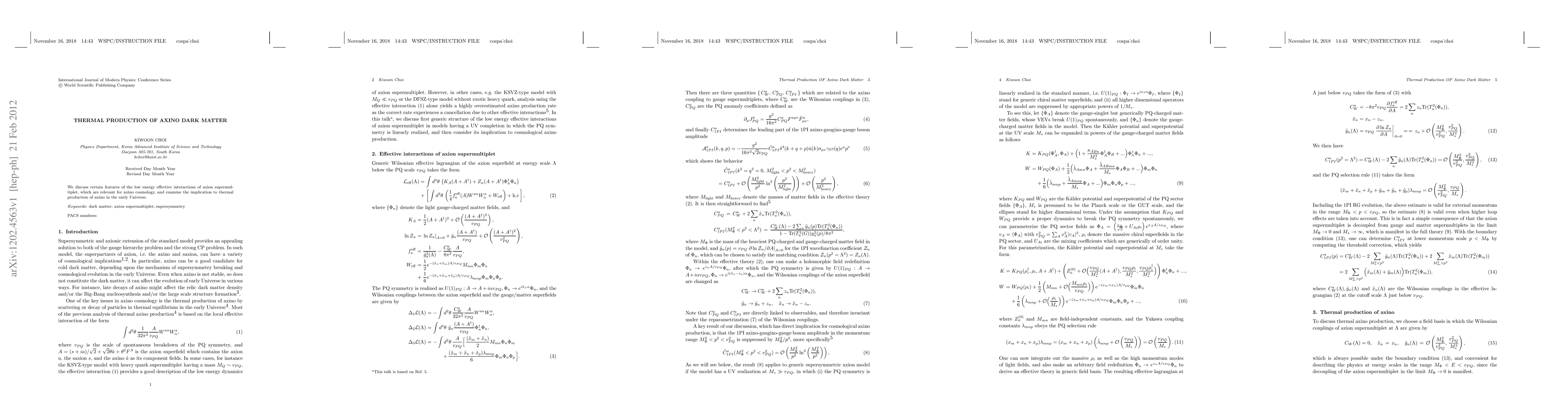 We discuss certain features of the low energy effective interactions of axion supermultiplet, which are relevant for axino cosmology, and examine the implication to thermal production of axino in the early Universe.