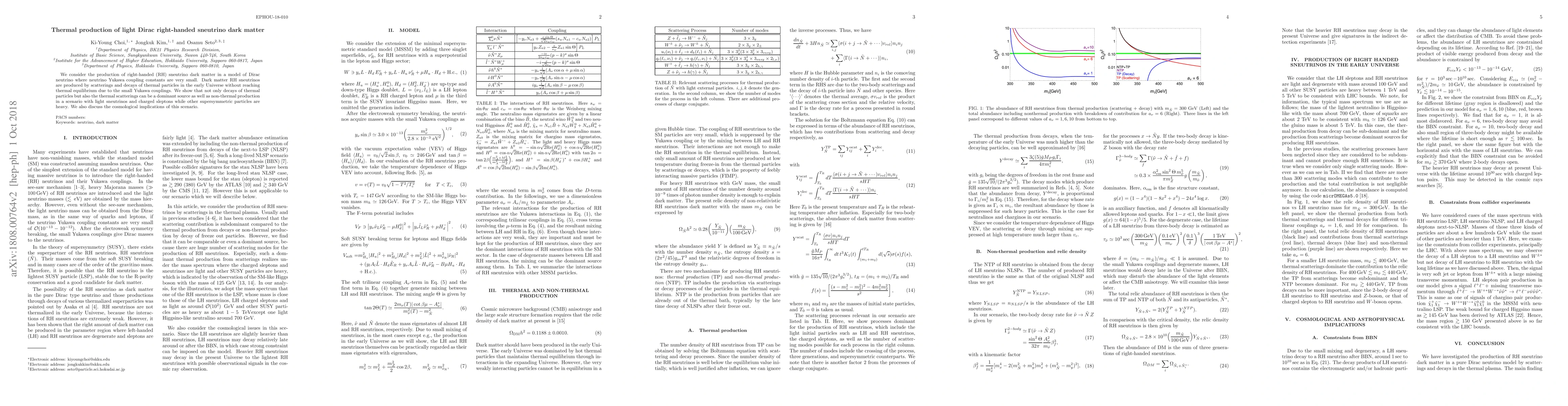 This paper explores the thermal production mechanisms of light Dirac right-handed sneutrino dark matter in a scenario with minimal neutrino Yukawa couplings. It demonstrates that both thermal scatterings and decays, alongside non-thermal production, can dominate the production of RH sneutrinos in the early universe, with implications for cosmology.