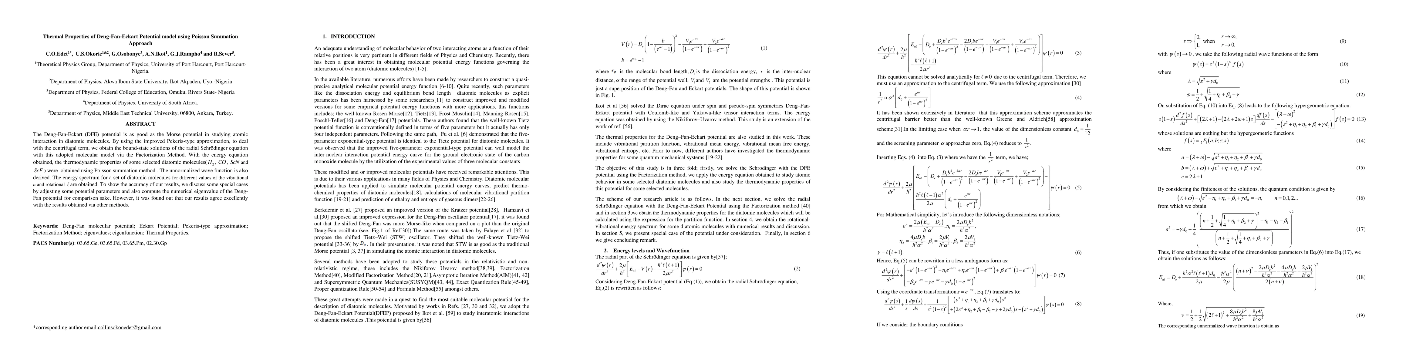 This paper investigates the thermal properties of the Deng-Fan-Eckart potential model for diatomic molecules using Poisson summation. The study derives bound-state solutions and thermodynamic properties via the Factorization Method and compares results with other methods, finding excellent agreement.