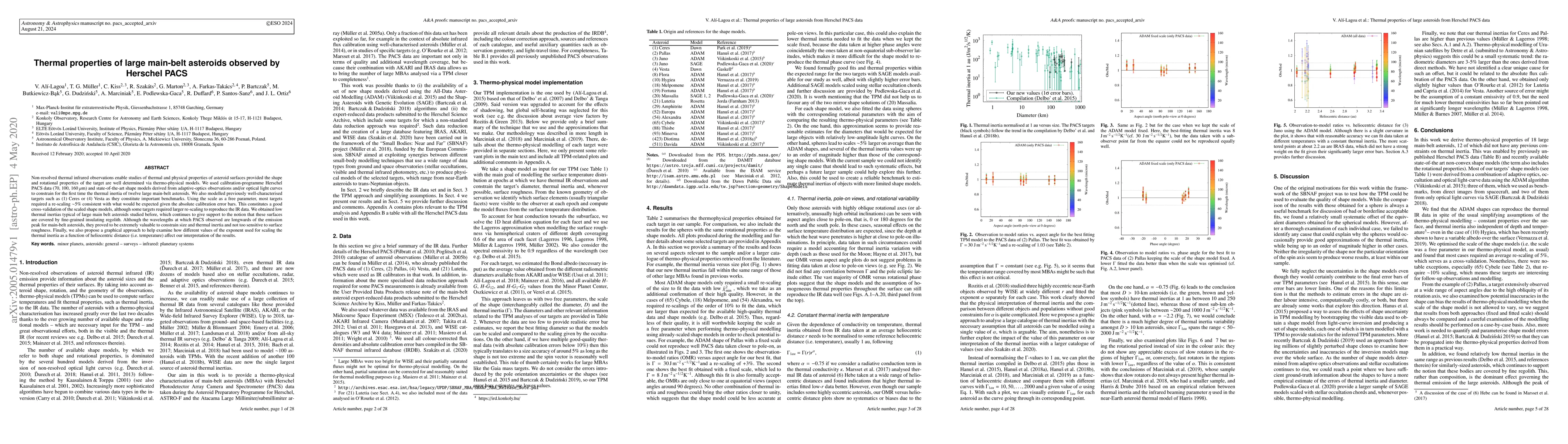 This paper investigates the thermal properties of twelve large main-belt asteroids using Herschel PACS data, finding low thermal inertia consistent with fine-grained regolith surfaces. The study validates shape models and proposes a graphical method to analyze the effect of thermal inertia scaling.