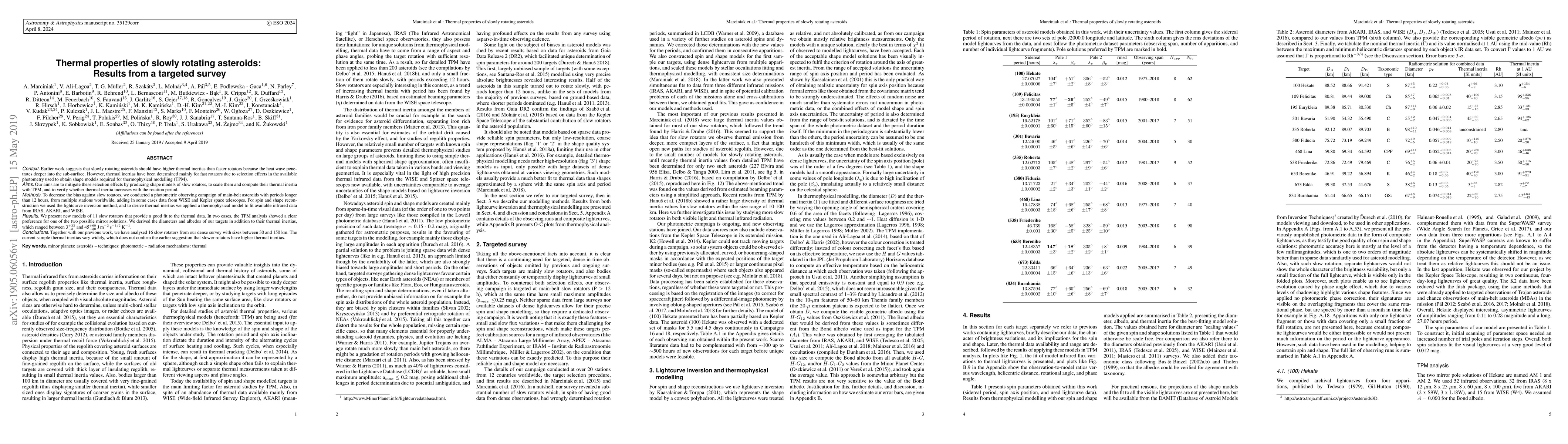 A survey of slowly rotating asteroids revealed varying thermal inertias, contradicting earlier predictions that slower rotators should have higher thermal inertias.