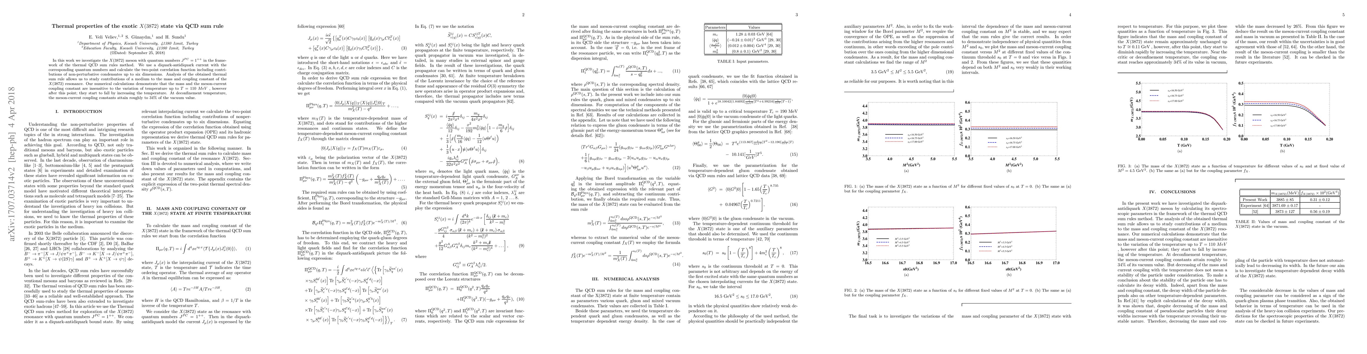 Researchers used QCD sum rules to study the $X(3872)$ meson's mass and coupling constant in a thermal medium, finding that they remain stable up to 110 MeV before decreasing with increasing temperature.