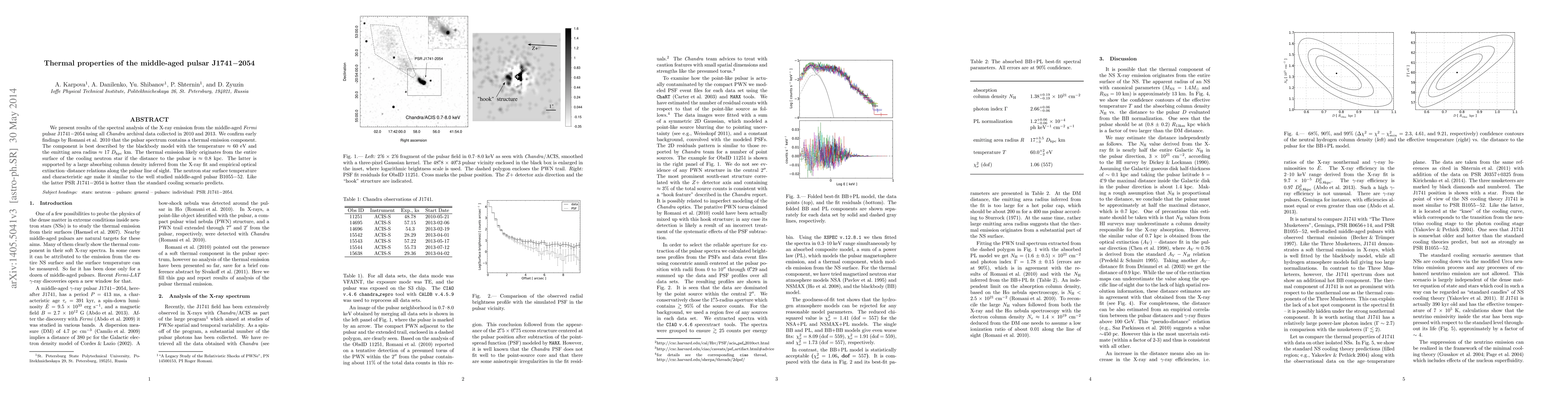 This paper analyzes the X-ray emission from the middle-aged pulsar J1741-2054, confirming a thermal emission component best described by a blackbody model with a temperature of 60 eV and an emitting area radius of 17 km, suggesting the emission likely originates from the entire neutron star surface. The findings align with the cooling characteristics of the similar pulsar B1055-52.