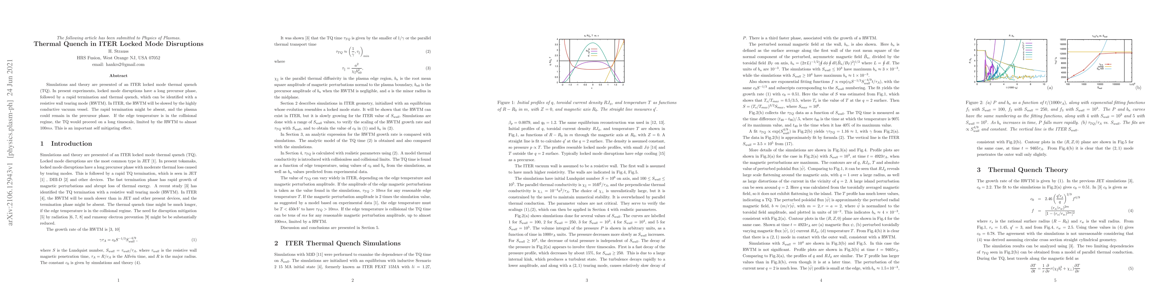 This paper investigates ITER locked mode disruptions, showing that simulations predict a long precursor phase followed by a rapid thermal quench linked to resistive wall tearing modes. In ITER, the vacuum vessel's high conductivity may slow this mode, potentially prolonging the thermal quench to nearly 100 ms if edge temperatures remain collisional.