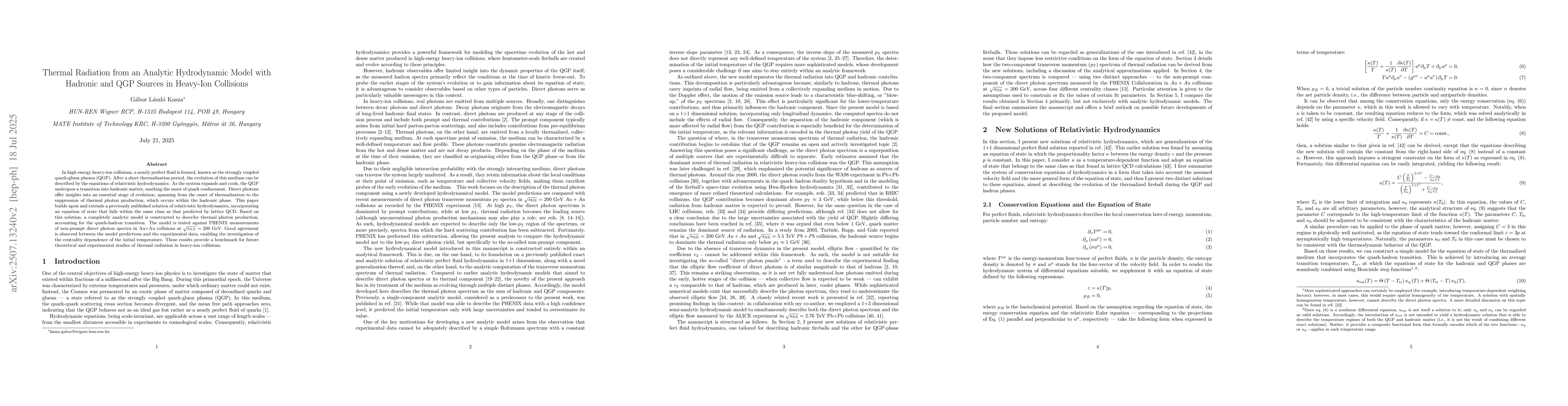 The paper presents a novel analytic model that successfully describes the transverse momentum spectrum of thermal radiation from heavy-ion collisions, even in more peripheral classes where hydrodynamics' applicability is less clear.