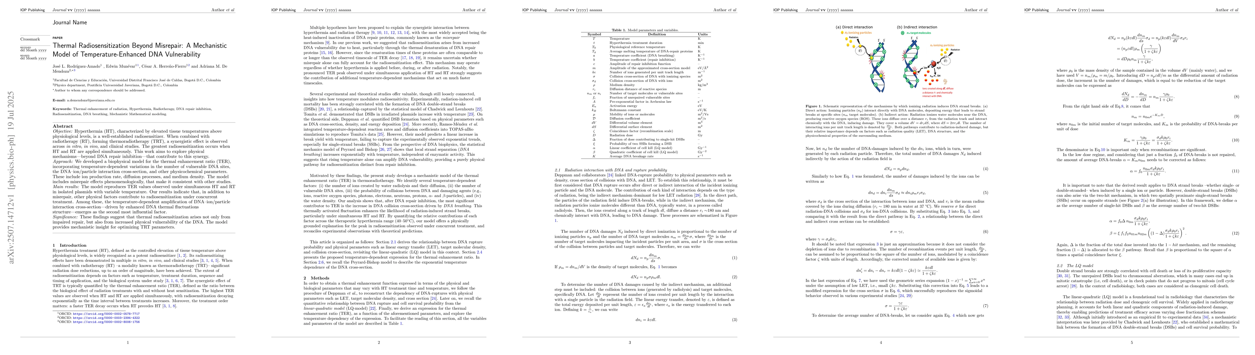 Objective: Hyperthermia (HT), characterized by elevated tissue temperatures above physiological levels, is a well-established radiosensitizer. When combined with radiotherapy (RT), forming thermoradiotherapy (TRT), a synergistic effect is observed across in vitro, in vivo, and clinical studies. The greatest radiosensitization occurs when HT and RT are applied simultaneously. This work aims to explore physical mechanisms -- beyond DNA repair inhibition -- that contribute to this synergy. Approach: We developed a biophysical model for the thermal enhancement ratio (TER), incorporating temperature-dependent variations in the number of vulnerable DNA sites, the DNA-ion/particle interaction cross-section, and other physicochemical parameters. These include ion production rate, diffusion processes, and medium density. The model includes misrepair effects phenomenologically, which make it consistent with other studies. Main results: The model reproduces TER values observed under simultaneous HT and RT in isolated plasmids with variable temperature. Our results indicate that, in addition to misrepair, other physical factors contribute to radiosensitization under concurrent treatment. Among these, the temperature-dependent amplification of DNA-ion/particle interaction cross-section -- driven by enhanced DNA thermal fluctuations structure -- emerges as the second most influential factor. Significance: These findings suggest that thermal radiosensitization arises not only from impaired repair, but also from increased physical vulnerability of the DNA. The model provides mechanistic insight for optimizing TRT parameters.