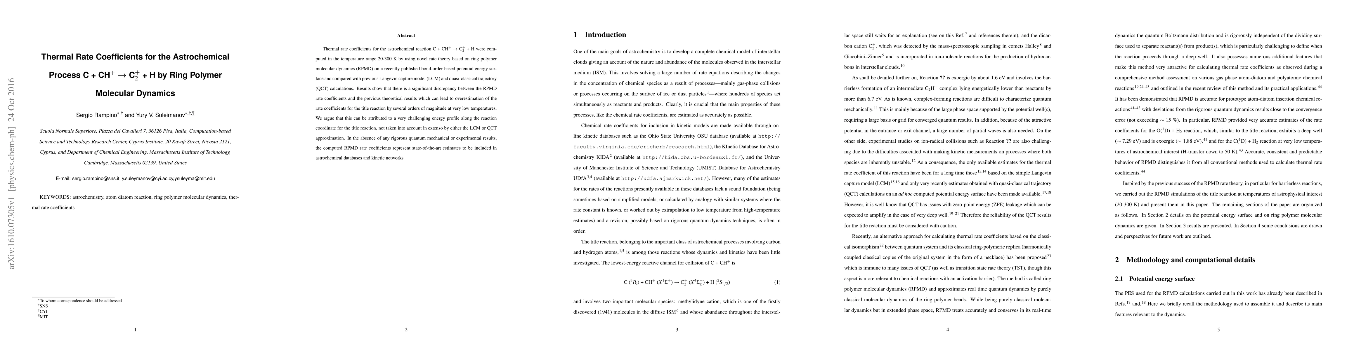 Thermal rate coefficients for the astrochemical reaction C + CH$^+$ $\to$ C$_2^+$ + H were computed in the temperature range 20-300 K by using novel rate theory based on ring polymer molecular dynamics (RPMD) on a recently published bond-order based potential energy surface and compared with previous Langevin capture model (LCM) and quasi-classical trajectory (QCT) calculations. Results show that there is a significant discrepancy between the RPMD rate coefficients and the previous theoretical results which can lead to overestimation of the rate coefficients for the title reaction by several orders of magnitude at very low temperatures. We argue that this can be attributed to a very challenging energy profile along the reaction coordinate for the title reaction, not taken into account in extenso by either the LCM or QCT approximation. In the absence of any rigorous quantum mechanical or experimental results, the computed RPMD rate coefficients represent state-of-the-art estimates to be included in astrochemical databases and kinetic networks.