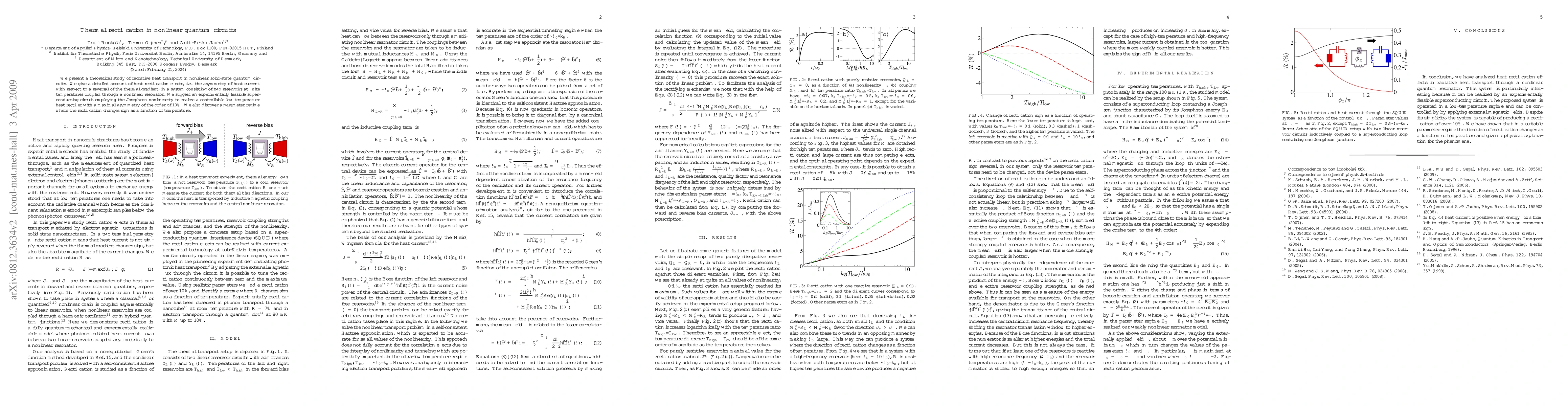 This paper investigates radiative heat transport in nonlinear quantum circuits, demonstrating heat rectification effects in a system with two temperature reservoirs connected via a nonlinear resonator. The study proposes a superconducting circuit with Josephson nonlinearity to achieve a controllable low temperature heat rectifier with up to 10% asymmetry, and identifies a temperature regime where rectification sign inversion occurs.