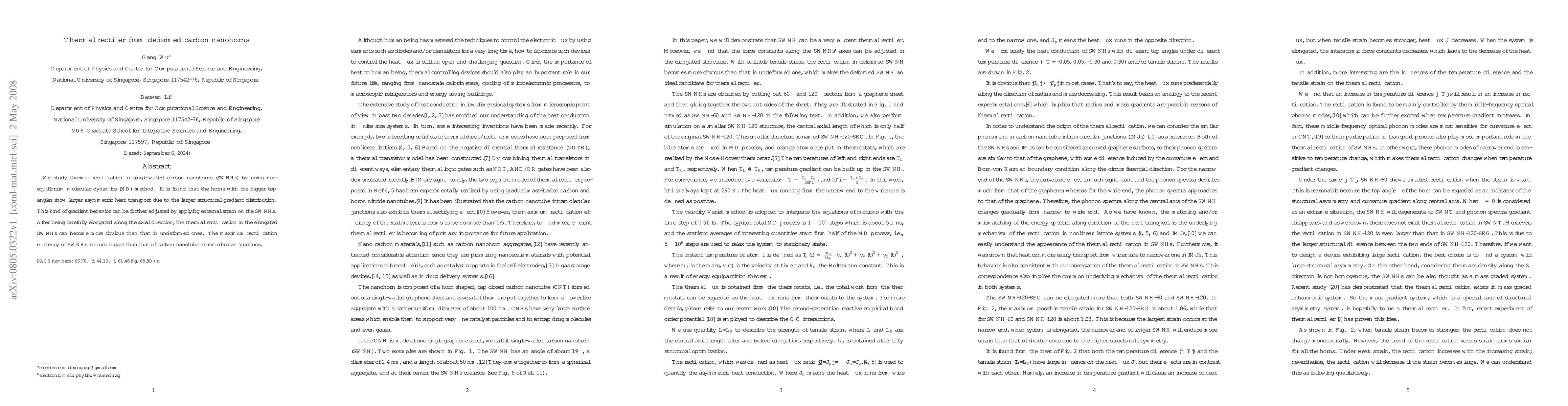 This study investigates thermal rectification in single-walled carbon nanohorns (SWNHs) using non-equilibrium molecular dynamics, finding that larger top angles enhance asymmetric heat transport. External strain can further optimize this effect, with elongated SWNHs showing superior rectification compared to undeformed ones.
