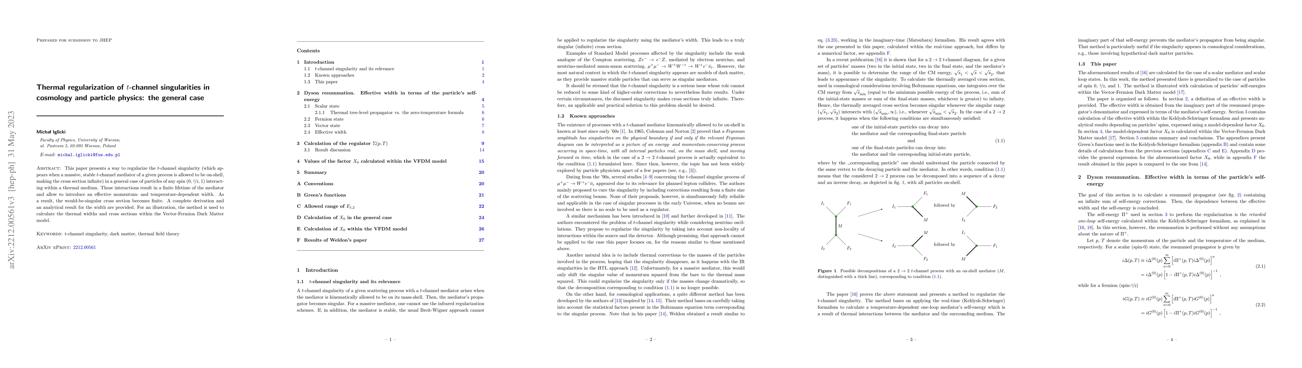 This paper presents a~way to regularize the $t$-channel singularity (which appears when a~massive, stable $t$-channel mediator of a~given process is allowed to be on-shell, making the cross section infinite) in a~general case of particles of any spin (0,~\nicefrac12,~1) interacting within a~thermal medium. Those interactions result in a~finite lifetime of the mediator and allow to introduce an~effective momentum- and temperature-dependent width. As a result, the would-be-singular cross section becomes finite. A~complete derivation and an analytical result for the width are provided. For an illustration, the method is used to calculate the thermal widths and cross sections within the~Vector-Fermion Dark Matter model.