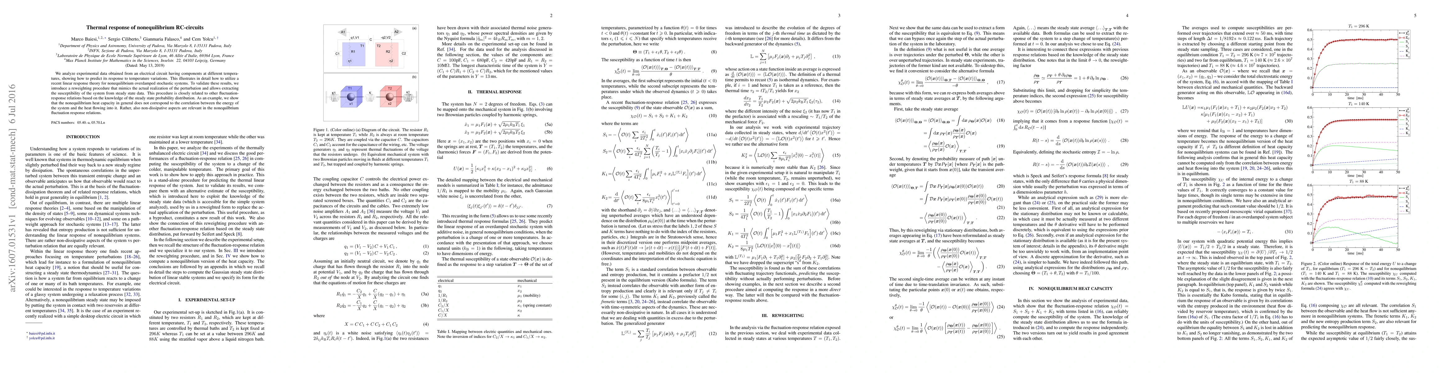 This paper analyzes experimental data from nonequilibrium RC-circuits at varying temperatures, demonstrating the application of linear response theory to predict thermal responses. It introduces a reweighting procedure to extract system susceptibility from steady state data, revealing that nonequilibrium heat capacity involves non-dissipative aspects beyond simple energy-heat correlation.