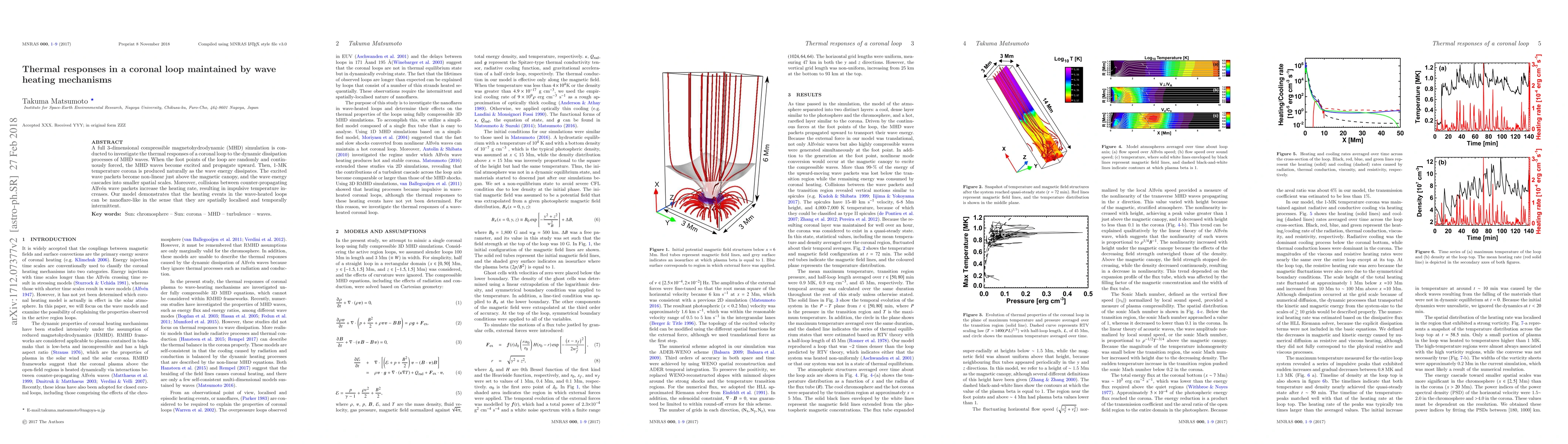 This study uses 3D compressible MHD simulations to explore how MHD waves dissipate energy in a coronal loop, leading to a 1-MK temperature corona. The model shows that non-linear wave packets and Alfvén wave collisions cause localized, intermittent heating events resembling nanoflares.