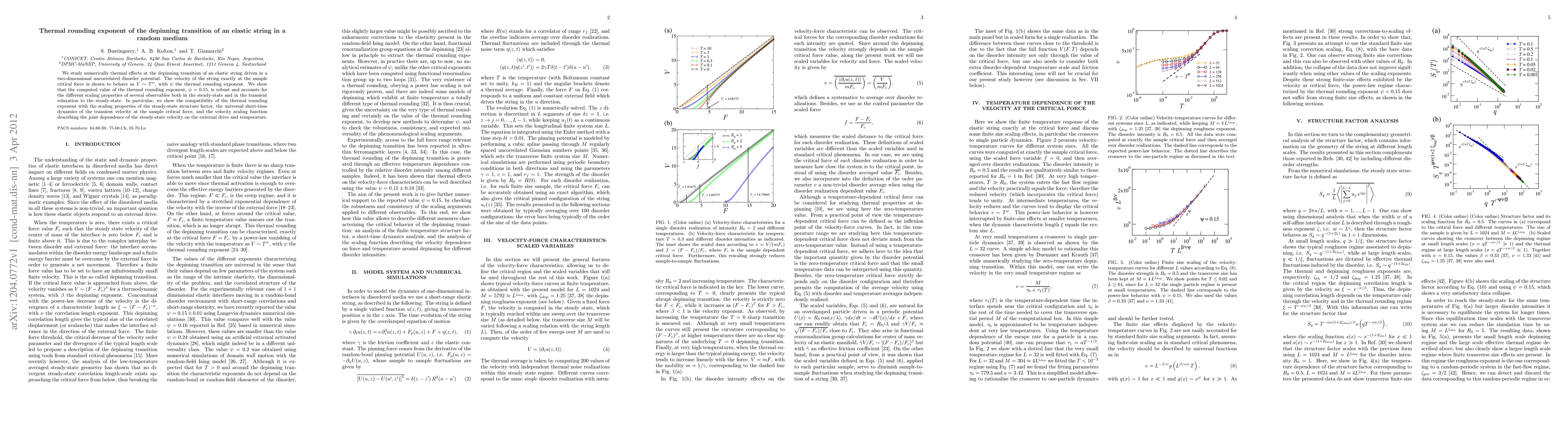 The study numerically investigates the thermal effects at the depinning transition of an elastic string in a random medium, finding a thermal rounding exponent $\psi = 0.15$. This exponent consistently scales various observables in both steady-state and transient dynamics.