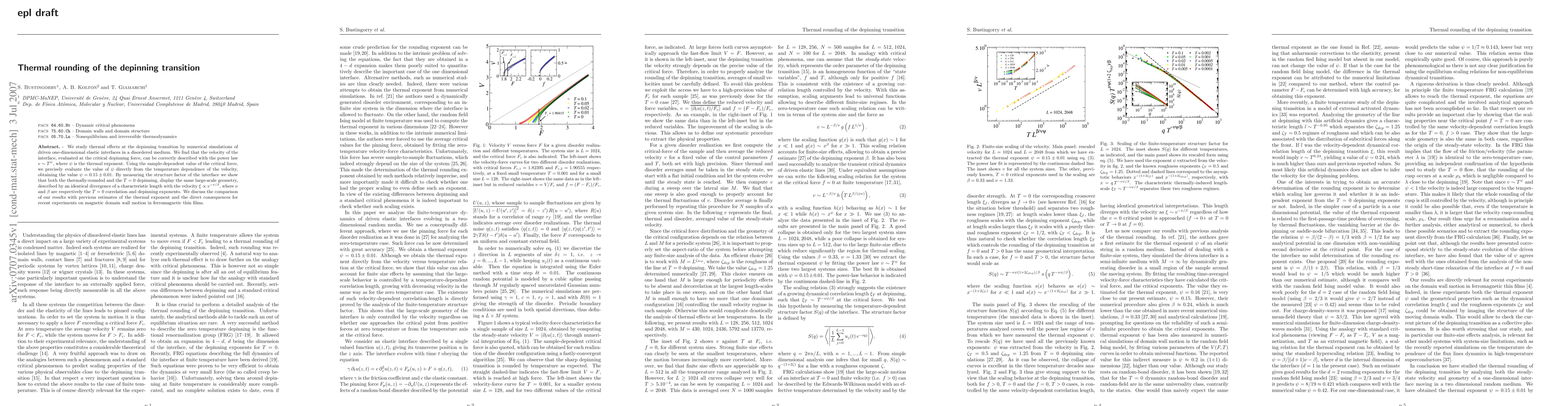 This paper investigates thermal effects on the depinning transition in driven elastic interfaces using numerical simulations, finding a thermal exponent $\psi = 0.15 \pm 0.01$ and showing that both thermal and zero-temperature depinning share the same large-scale geometric characteristics.