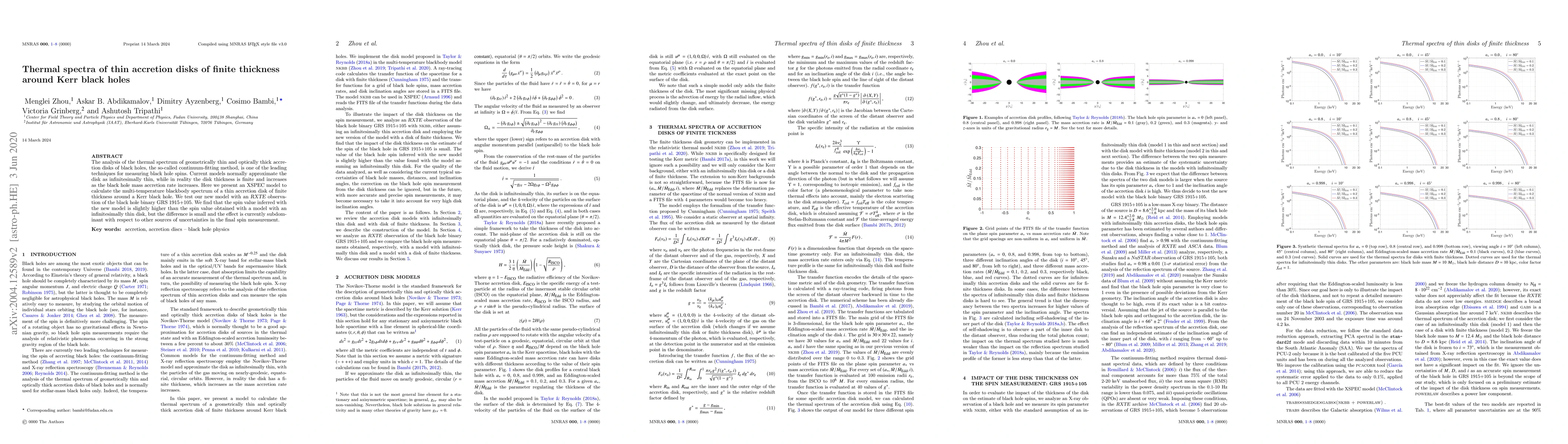 This paper presents an XSPEC model for calculating the thermal spectrum of geometrically thin accretion disks of finite thickness around Kerr black holes, finding a slightly higher spin value for GRS 1915+105 compared to models assuming an infinitesimally thin disk, though the difference remains small and subdominant to other measurement uncertainties.