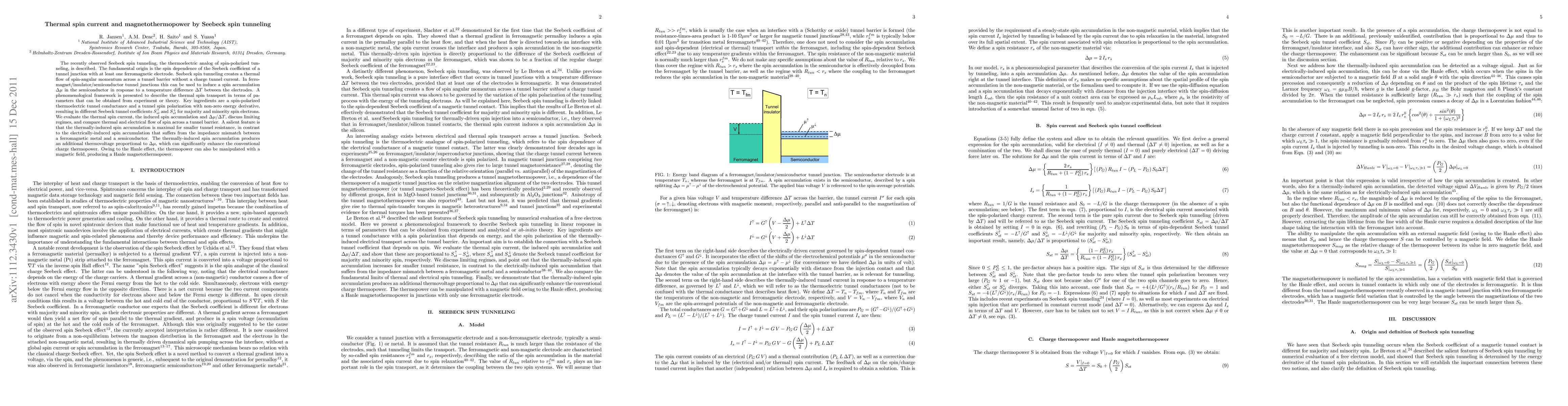 This paper investigates Seebeck spin tunneling, a thermoelectric phenomenon where spin-angular momentum is transferred across a tunnel barrier without charge flow. It describes a framework for thermal spin transport, highlighting the role of spin-polarized thermoelectric tunnel conductance and the impact of temperature differences on spin accumulation in ferromagnet/insulator/semiconductor junctions.