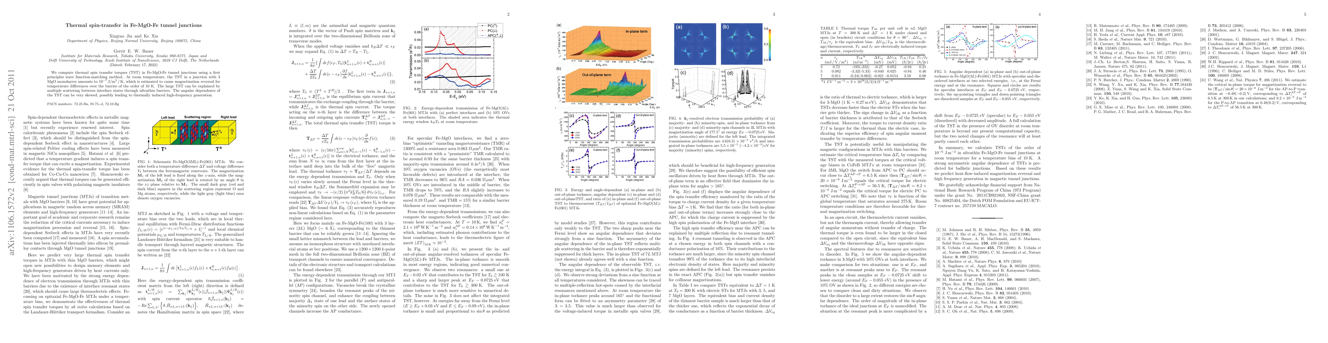 The research computes thermal spin transfer torques (TST) in Fe-MgO-Fe tunnel junctions using a first-principles wave function-matching method.