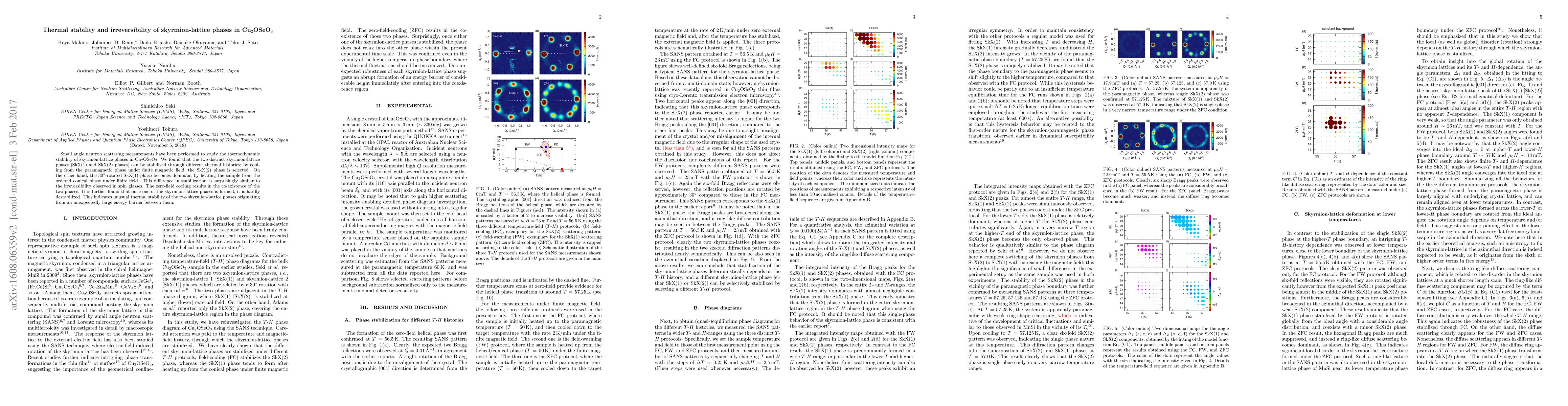 The study demonstrates the use of small angle neutron scattering to map out the thermal stability and irreversibility of distinct skyrmion-lattice phases in Cu$_2$OSeO$_3$, revealing protocol-dependent phase selection and unusual stability characteristics.