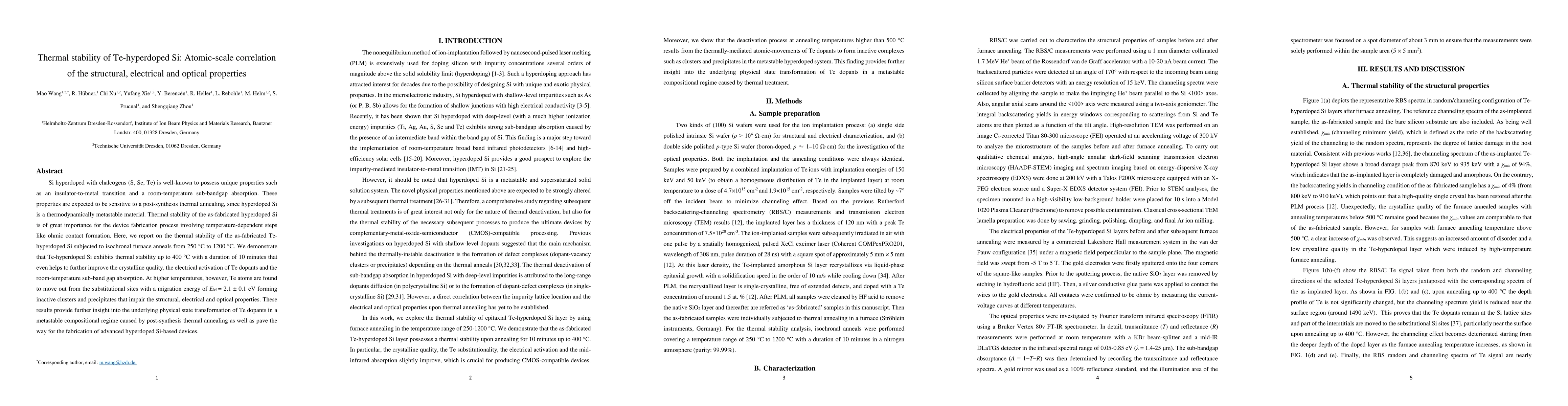 This paper investigates the thermal stability of Te-hyperdoped silicon, revealing that it maintains stability up to 400°C for 10 minutes, enhancing its crystalline quality and electrical properties. At higher temperatures, Te atoms migrate, forming inactive clusters that degrade the material's properties, providing insights into the physical state transformation of Te dopants and implications for advanced device fabrication.