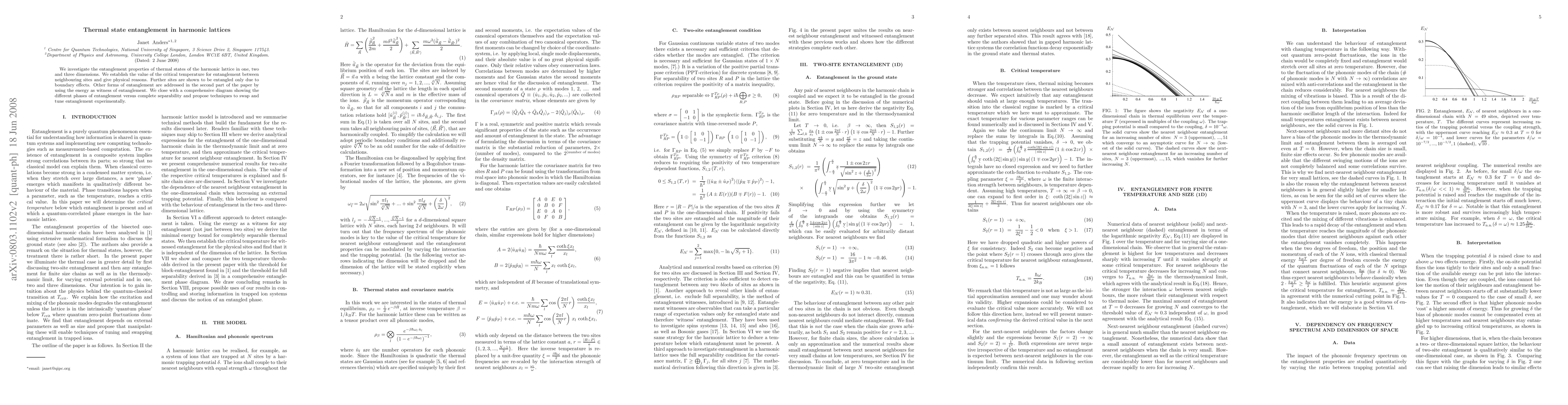 We investigate the entanglement properties of thermal states of the harmonic lattice in one, two and three dimensions. We establish the value of the critical temperature for entanglement between neighbouring sites and give physical reasons. Further sites are shown to be entangled only due to boundary effects. Other forms of entanglement are addressed in the second part of the paper by using the energy as witness of entanglement. We close with a comprehensive diagram showing the different phases of entanglement versus complete separability and propose techniques to swap and tune entanglement experimentally.