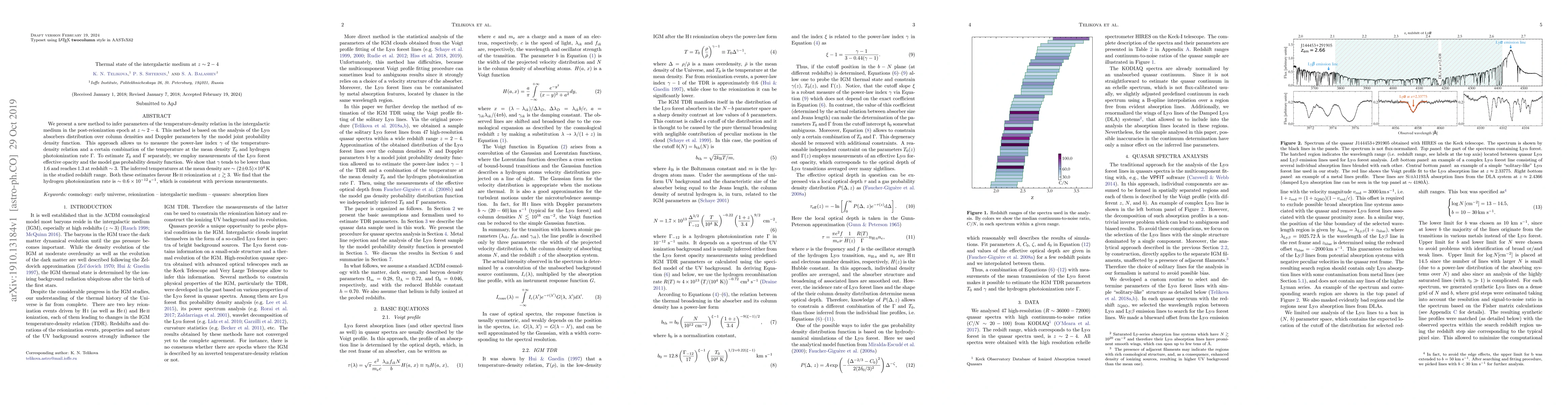 The research introduces a novel method to estimate temperature-density relation parameters in the intergalactic medium from $zsim2-4$. Utilizing Ly$alpha$ absorbers, they find a power-law index $gamma$ lower than 1.6, around 1.3 at $zsim3$, and an average temperature at mean density $T_0 sim 2 imes10^4$ K. The study also confirms a hydrogen photoionization rate of $0.6 imes10^{-12}$ s$^{-1}$, supporting HeII reionization at $zgtrsim3$.