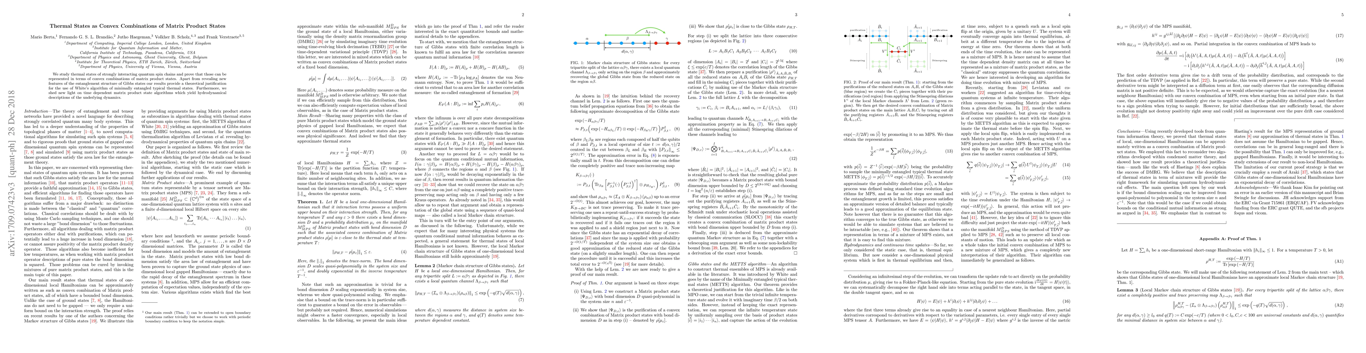 This paper demonstrates that thermal states in strongly interacting quantum spin chains can be expressed as convex combinations of matrix product states, providing insights into the entanglement structure of Gibbs states and supporting the efficacy of White's algorithm for minimally entangled typical thermal states. Additionally, it enhances understanding of time-dependent matrix product state algorithms used for hydrodynamical descriptions.