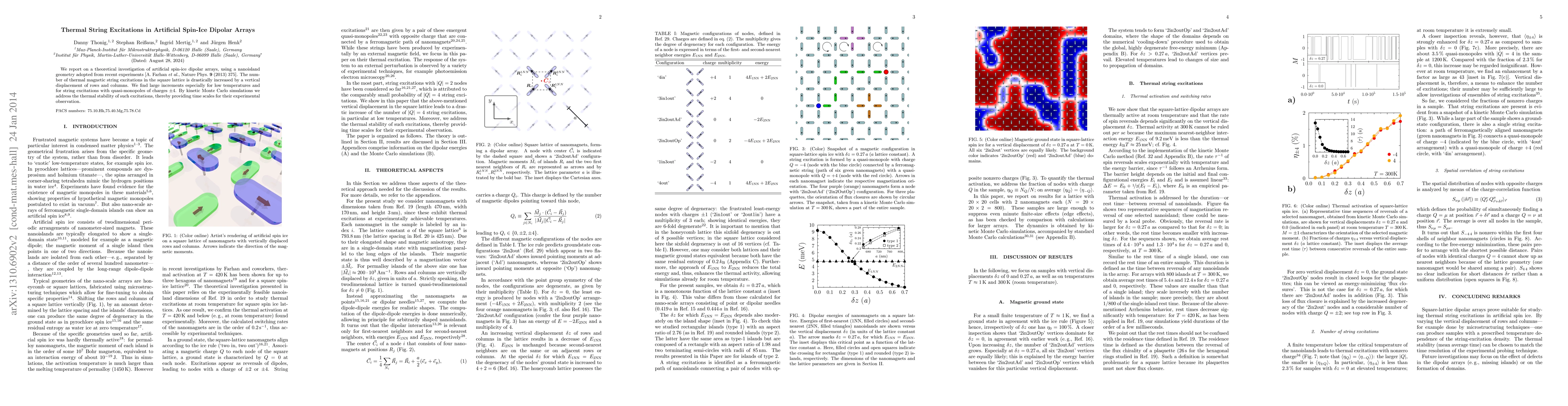 The research introduces a new theoretical approach to studying thermal string excitations in artificial spin-ice dipolar arrays, which is distinct from existing research.