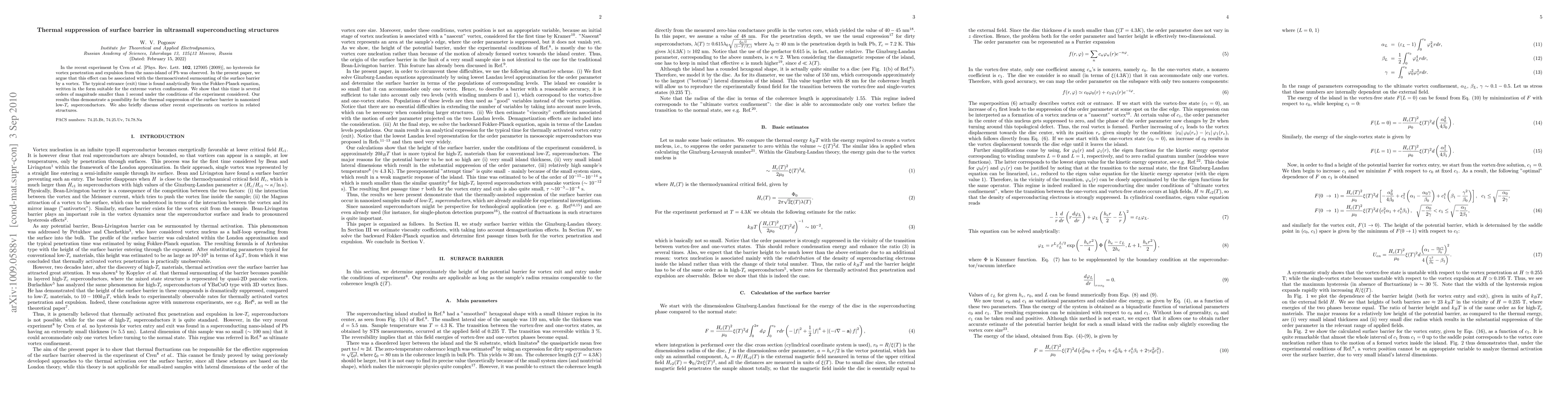 In the recent experiment by Cren \textit{et al.} [Phys. Rev. Lett. \textbf{102}, 127005 (2009)], no hysteresis for vortex penetration and expulsion from the nano-island of Pb was observed. In the present paper, we argue that this effect can be associated with the thermoactivated surmounting of the surface barrier by a vortex. The typical entrance (exit) time is found analytically from the Fokker-Planck equation, written in the form suitable for the extreme vortex confinement. We show that this time is several orders of magnitude smaller than 1 second under the conditions of the experiment considered. Our results thus demonstrate a possibility for the thermal suppression of the surface barrier in nanosized low-$T_{c}$ superconductors. We also briefly discuss other recent experiments on vortices in related structures.