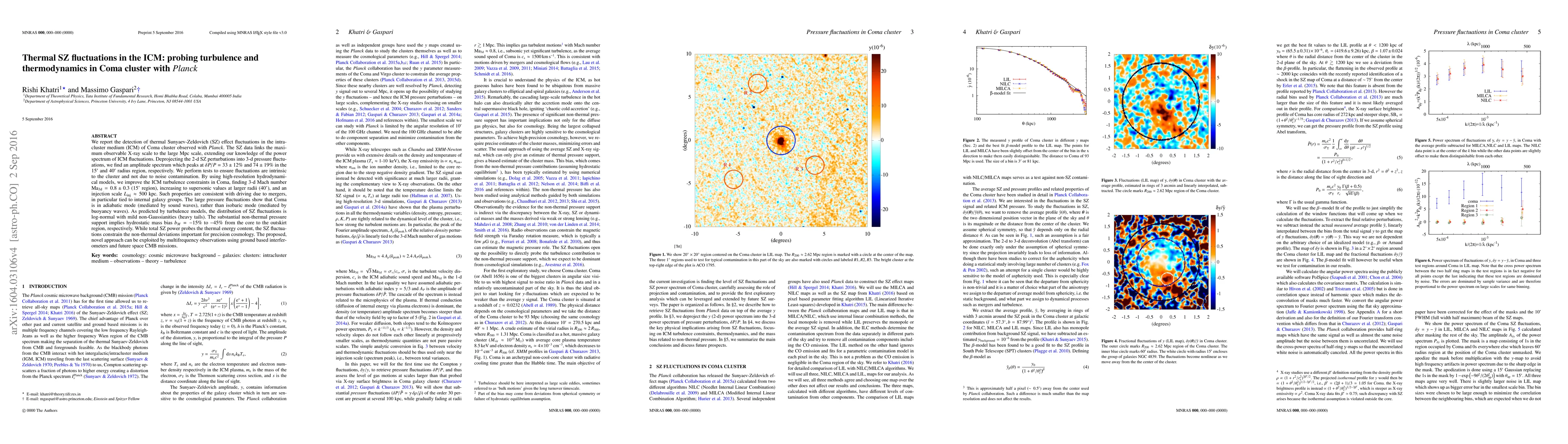 This paper reports the detection of thermal Sunyaev-Zeldovich effect fluctuations in the Coma cluster using Planck data, revealing turbulence and thermodynamic properties. The study finds significant pressure fluctuations and constrains the ICM turbulence, indicating Coma cluster operates in an adiabatic mode driven by mergers.