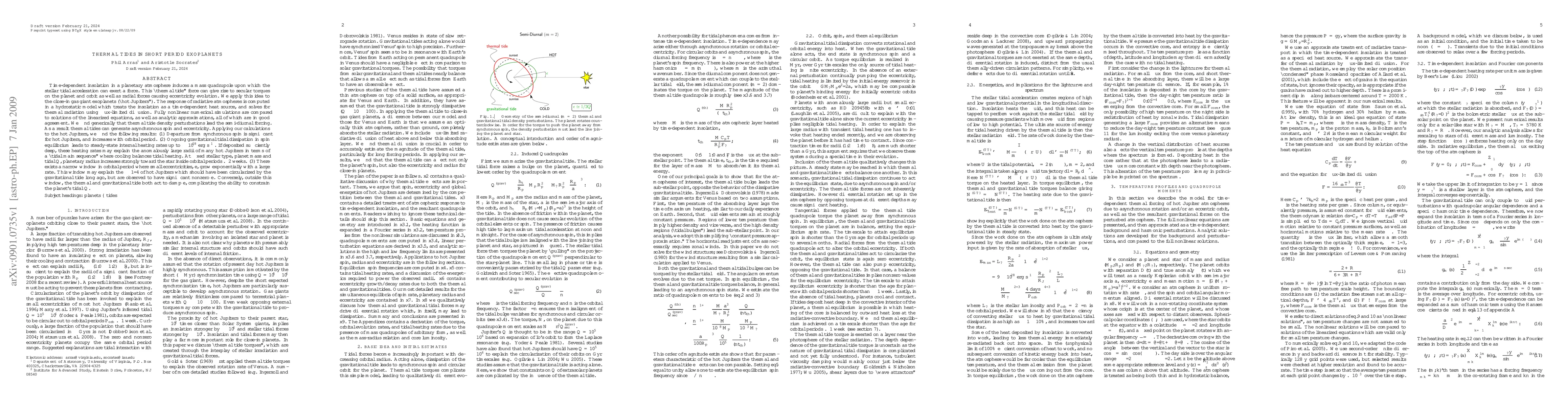 This paper investigates the impact of thermal tides on the spin and orbital dynamics of short-period exoplanets, particularly "hot Jupiters." The study finds that thermal tides can lead to significant departures from synchronous spin and generate internal heating that may explain the large radii of these planets, contributing to a "tidal main sequence."