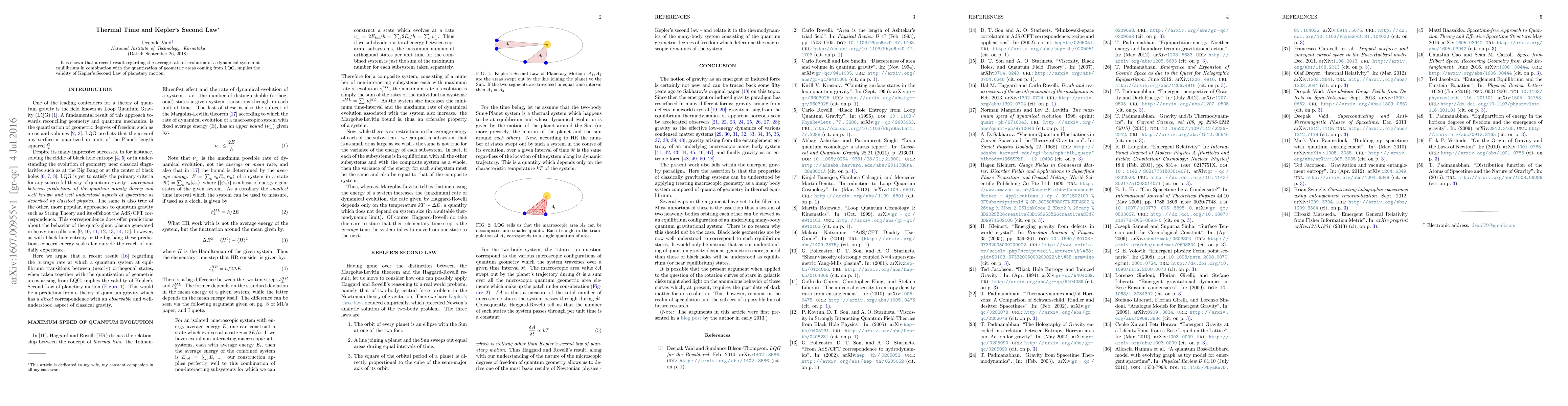 Summary: The paper demonstrates that the average rate of thermal time evolution in equilibrium systems, when combined with Loop Quantum Gravity's geometric area quantization, supports the validity of Kepler's Second Law of planetary motion.