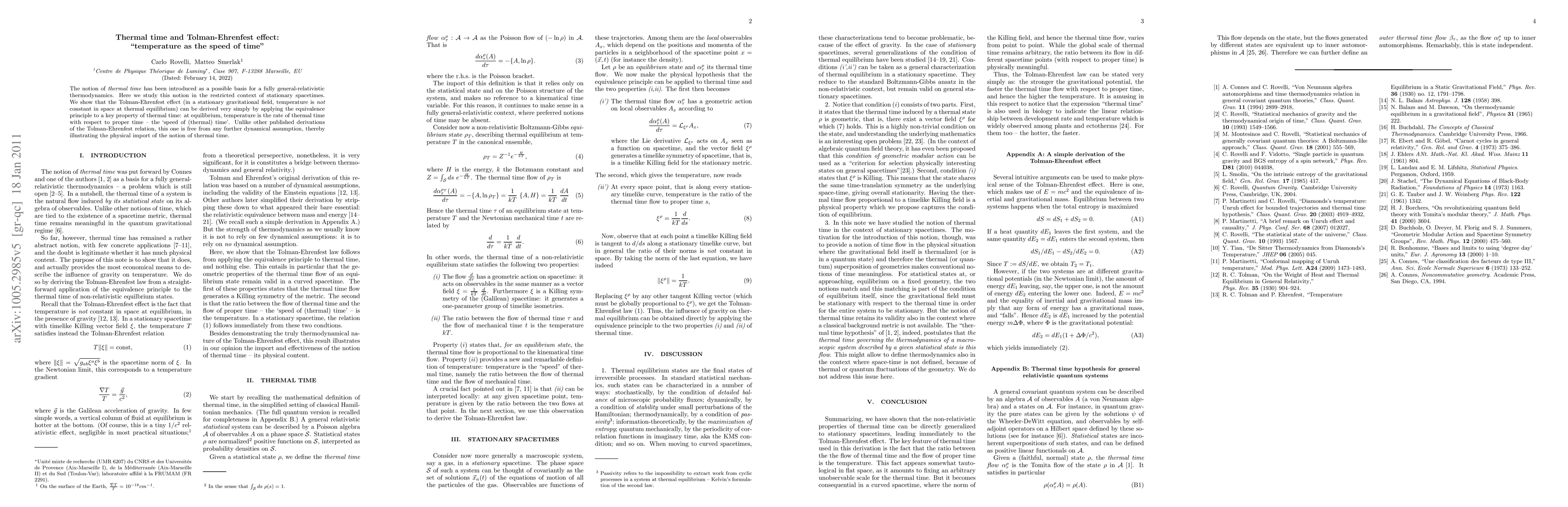 This paper explores thermal time as a foundation for general-relativistic thermodynamics, demonstrating that the Tolman-Ehrenfest effect can be derived by applying the equivalence principle to the concept that temperature is the "speed of time" in equilibrium. This derivation avoids additional dynamical assumptions, highlighting the significance of thermal time.