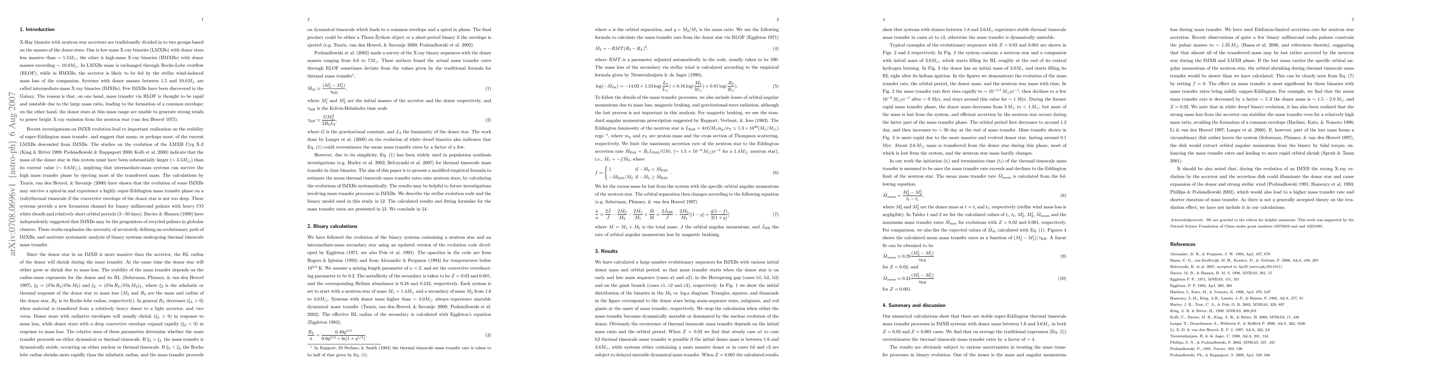 This paper investigates thermal timescale mass transfer in intermediate-mass X-ray binaries, finding that traditional methods overestimate mass transfer rates by a factor of $\sim 4$. The study uses binary evolution sequences to systematically explore various initial donor masses and orbital periods.