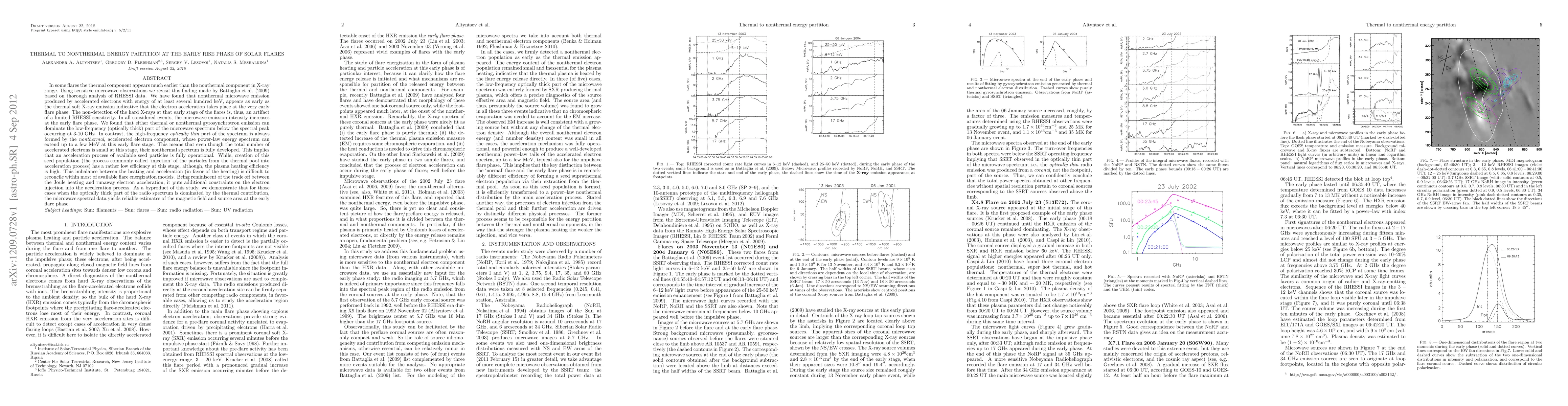 In some flares the thermal component appears much earlier than the nonthermal component in X-ray range. Using sensitive microwave observations we revisit this finding made by Battaglia et al. (2009) based on RHESSI data analysis. We have found that nonthermal microwave emission produced by accelerated electrons with energy of at least several hundred keV, appears as early as the thermal soft X-ray emission indicative that the electron acceleration takes place at the very early flare phase. The non-detection of the hard X-rays at that early stage of the flares is, thus, an artifact of a limited RHESSI sensitivity. In all considered events, the microwave emission intensity increases at the early flare phase. We found that either thermal or nonthermal gyrosynchrotron emission can dominate the low-frequency part of the microwave spectrum below the spectral peak occurring at 3-10 GHz. In contrast, the high-frequency optically thin part of the spectrum is always formed by the nonthermal, accelerated electron component, whose power-law energy spectrum can extend up to a few MeV at this early flare stage. This means that even though the total number of accelerated electrons is small at this stage, their nonthermal spectrum is fully developed. This implies that an acceleration process of available seed particles is fully operational. While, creation of this seed population (the process commonly called `injection' of the particles from the thermal pool into acceleration) has a rather low efficiency at this stage, although, the plasma heating efficiency is high. This imbalance between the heating and acceleration (in favor of the heating) is difficult to reconcile within most of available flare energization models. Being reminiscent of the tradeoff between the Joule heating and runaway electron acceleration, it puts additional constraints on the electron injection into the acceleration process.