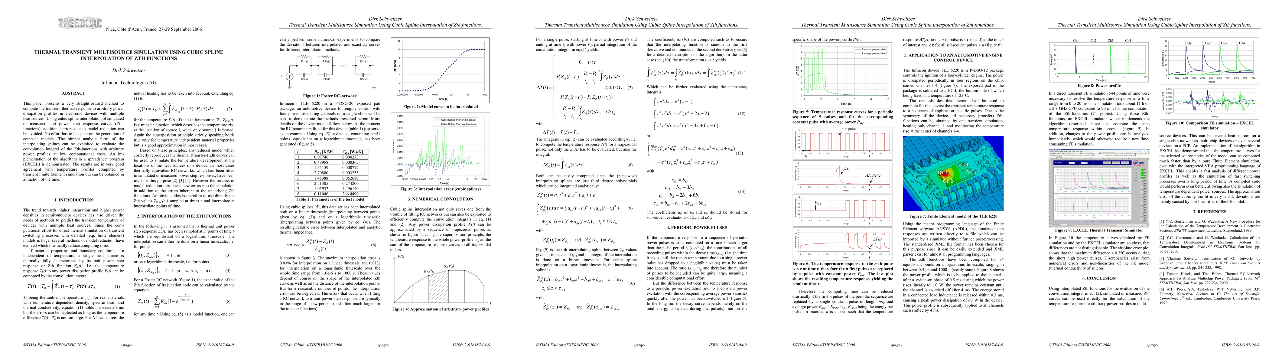 This paper introduces a method for computing thermal transient responses in electronic devices with multiple heat sources using cubic spline interpolation of Zth functions, avoiding model reduction errors and enabling fast computation with results comparable to Finite Element simulations. The method is implemented in Excel, demonstrating significant computational efficiency.