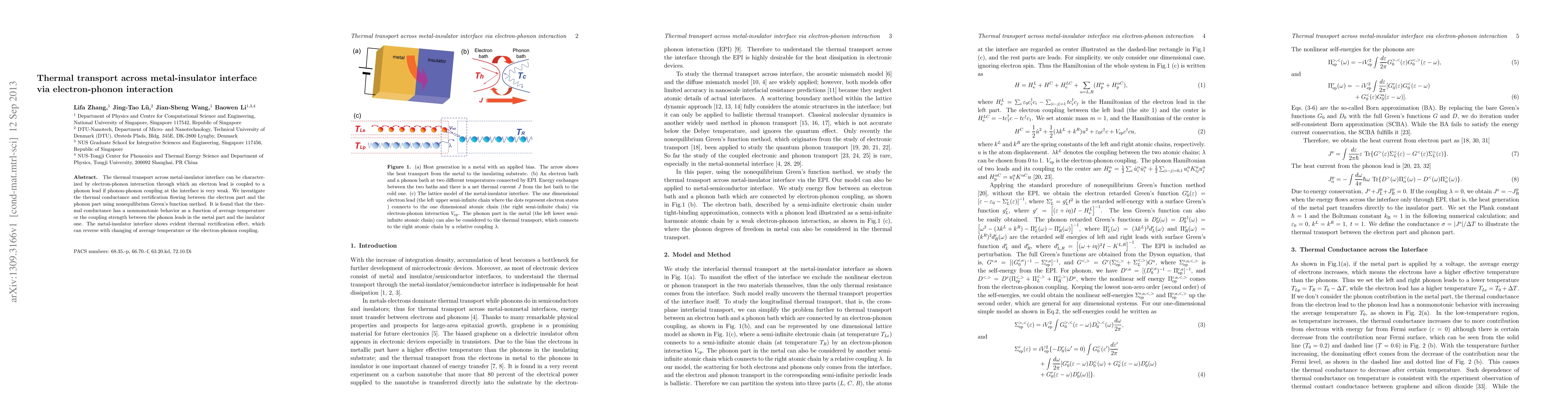 Summary: This paper investigates thermal transport across a metal-insulator interface using electron-phonon interaction. It reveals nonmonotonic thermal conductance behavior and identifies a thermal rectification effect that reverses with changes in temperature or coupling strength.