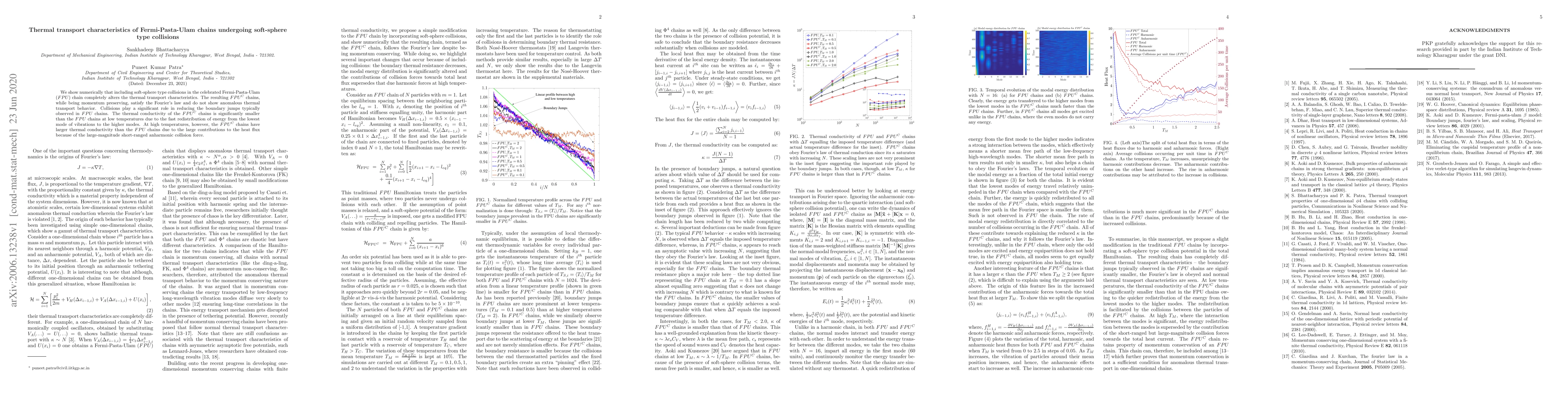 This paper numerically demonstrates that incorporating soft-sphere type collisions into the Fermi-Pasta-Ulam chain alters thermal transport, leading to Fourier's law compliance and reduced boundary jumps, with varying thermal conductivity depending on temperature.