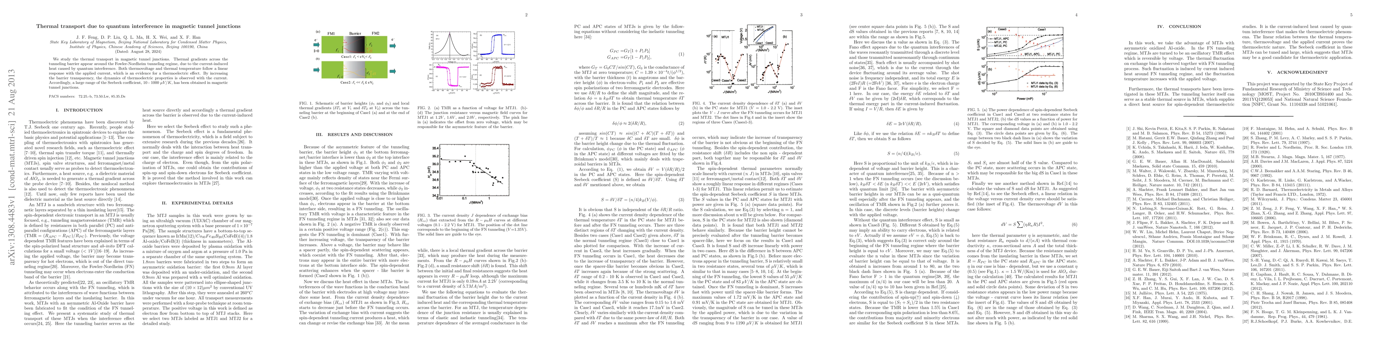 This study investigates thermal transport in magnetic tunnel junctions, revealing a thermoelectric effect due to quantum interference in the Fowler-Nordheim tunneling regime. The Seebeck coefficient ranges from 10 to 1000 μV/K, demonstrating a linear response to applied current.