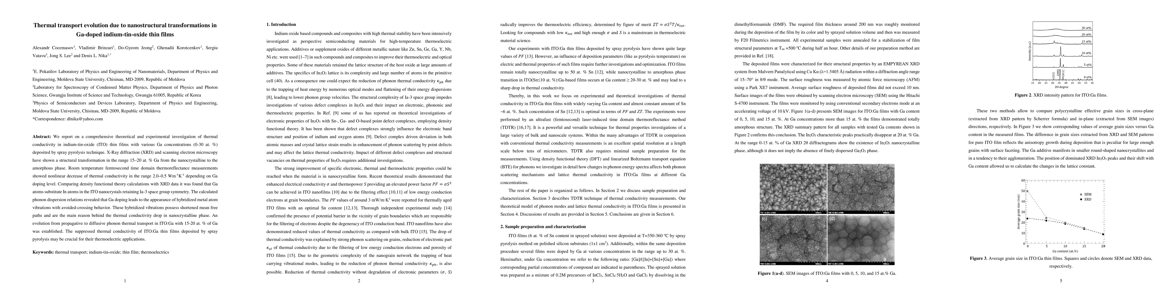 This paper investigates the thermal conductivity in Ga-doped indium-tin-oxide (ITO) thin films, revealing a structural transformation from nanocrystalline to amorphous at 15-20 at. % Ga, accompanied by a significant drop in thermal conductivity due to hybridized phonon vibrations. This transformation could enhance thermoelectric applications of these films.
