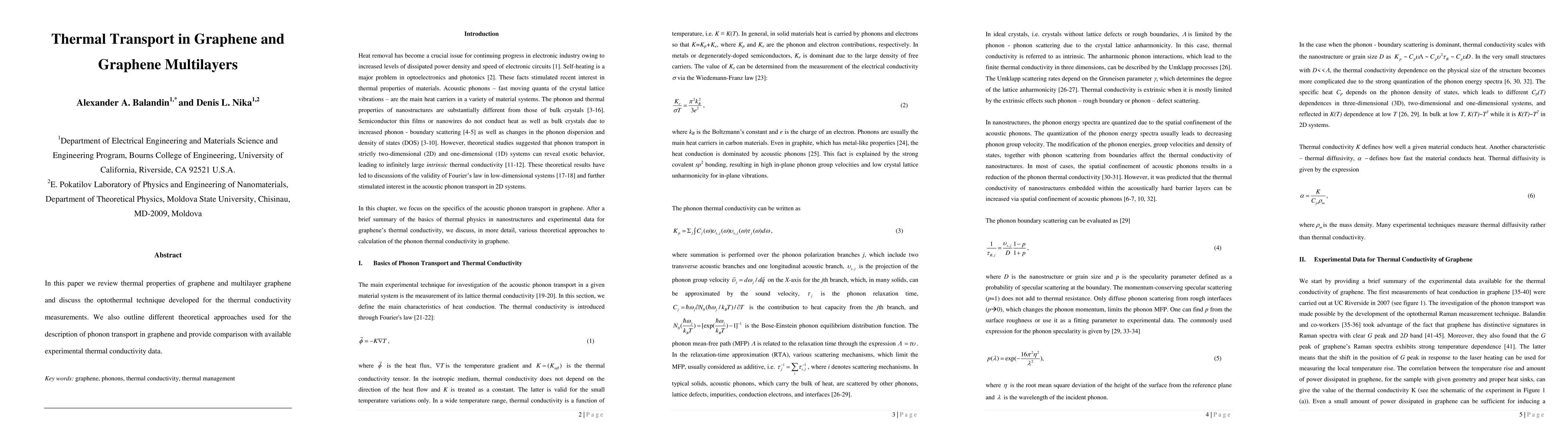 Understanding thermal transport in graphene and its nanostructures is crucial for the development of electronic and optoelectronic applications, as well as for heat removal and thermal management in nanoelectronics.