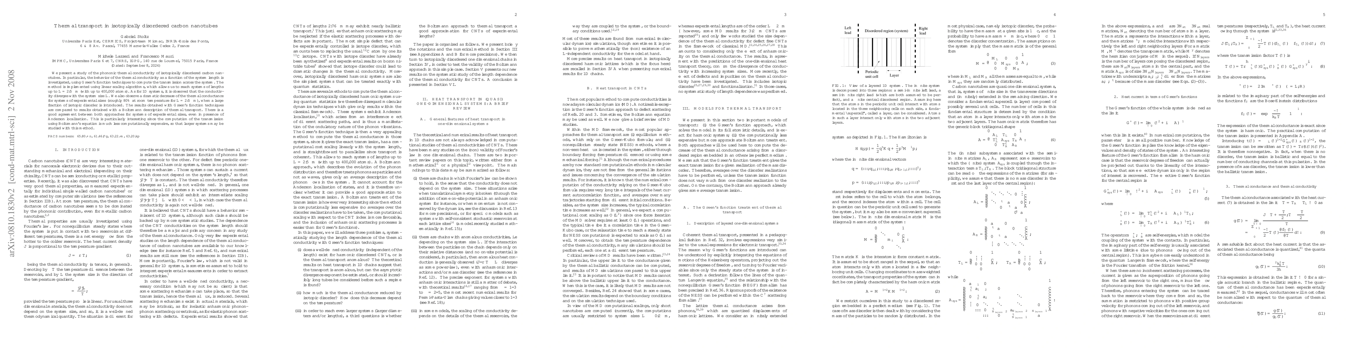 We present a study of the phononic thermal conductivity of isotopically disordered carbon nanotubes. In particular, the behavior of the thermal conductivity as a function of the system length is investigated, using Green's function techniques to compute the transmission across the system. The method is implemented using linear scaling algorithms, which allows us to reach systems of lengths up to $L=2.5\mu$m (with up to 400,000 atoms). As for 1D systems, it is observed that the conductivity diverges with the system size $L$. We also observe a dramatic decrease of the thermal conductance for systems of experimental sizes (roughly 80% at room temperature for $L = 2.5$ $\mu$m), when a large fraction of isotopic disorder is introduced. The results obtained with Green's function techniques are compared to results obtained with a Boltzmann description of thermal transport. There is a good agreement between both approaches for systems of experimental sizes, even in presence of Anderson localization. This is particularly interesting since the computation of the transmission using Boltzmann's equation is much less computationally expensive, so that larger systems may be studied with this method.