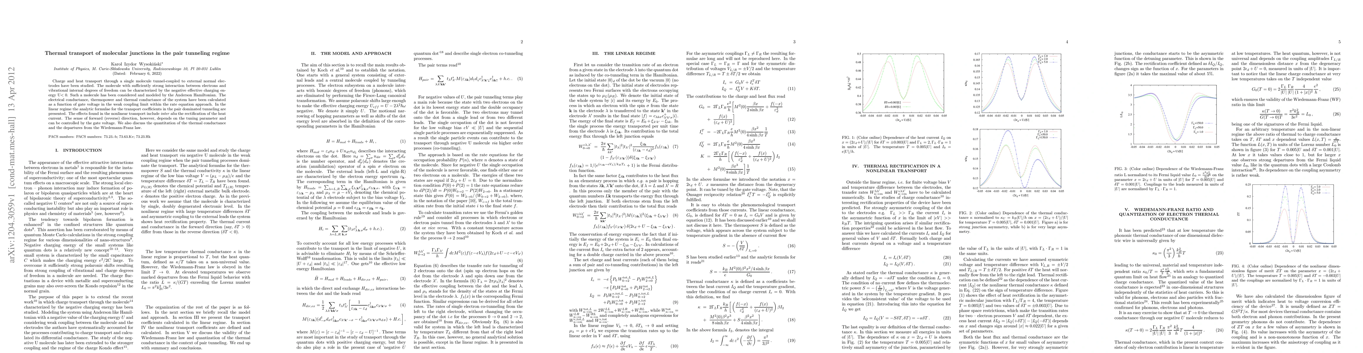 Charge and heat transport through a single molecule tunnel-coupled to external normal electrodes have been studied. The molecule with sufficiently strong interaction between lectrons and vibrational internal degrees of freedom can be characterized by the negative effective charging energy U$<0$. Such a molecule has been considered and modeled by the Anderson Hamiltonian. The electrical conductance, thermopower and thermal conductance of the system have been calculated as a function of gate voltage in the weak coupling limit within the rate equation approach. In the linear regime the analytic formulae for the transport coefficients in the pair dominated tunneling are presented. The effects found in the nonlinear transport include {\it inter alia} the rectification of the heat current. The sense of forward (reverse) direction, however, depends on the tuning parameter and can be controlled by the gate voltage. We also discuss the quantitation of the thermal conductance and the departures from the Wiedemann-Franz law.