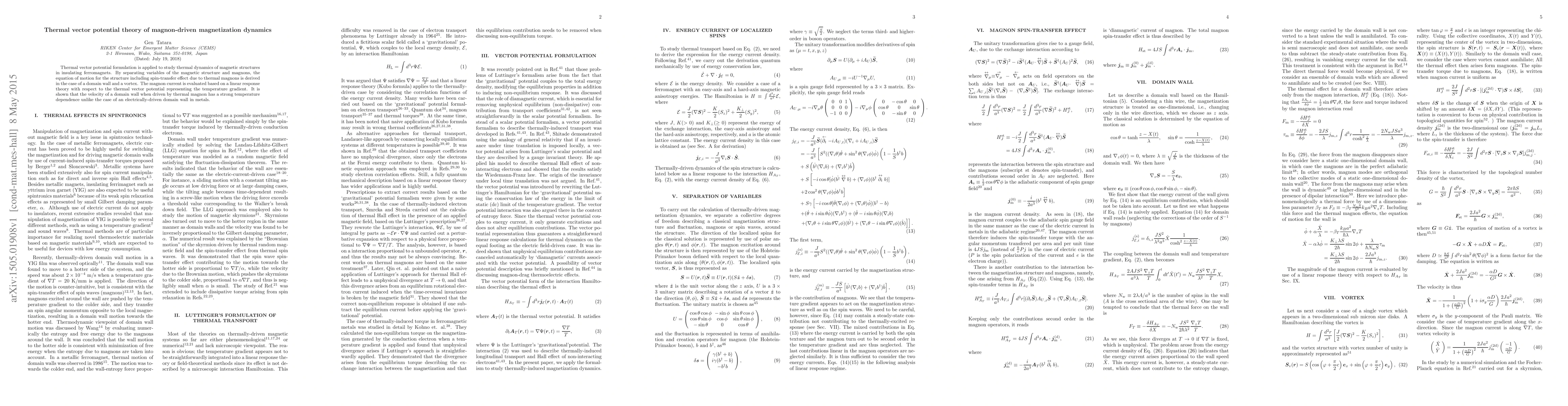 Research applies thermal vector potential theory to study magnetization dynamics in insulating ferromagnets, finding that domain wall velocities have strong temperature dependence when driven by thermal magnons.