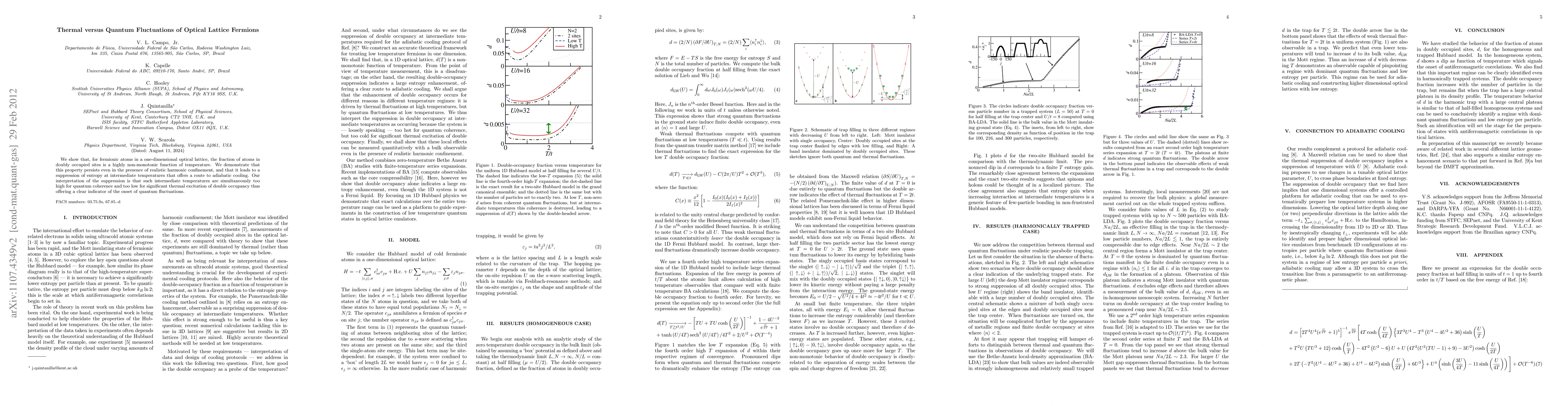 This paper investigates the non-monotonic behavior of doubly occupied sites in one-dimensional optical lattice fermions as a function of temperature, revealing a suppression of entropy at intermediate temperatures. This phenomenon indicates the onset of quantum fluctuations, distinguishing it from thermal excitations.